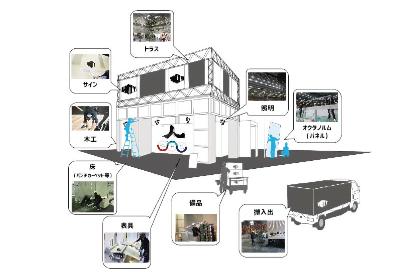 特にユニティーは、東京ビッグサイトやインテックス大阪といった大規模会場を年間300から400か所程施工しています。そのような点でも、大きなイベント開催の責任を担う、重要な役割をしています。