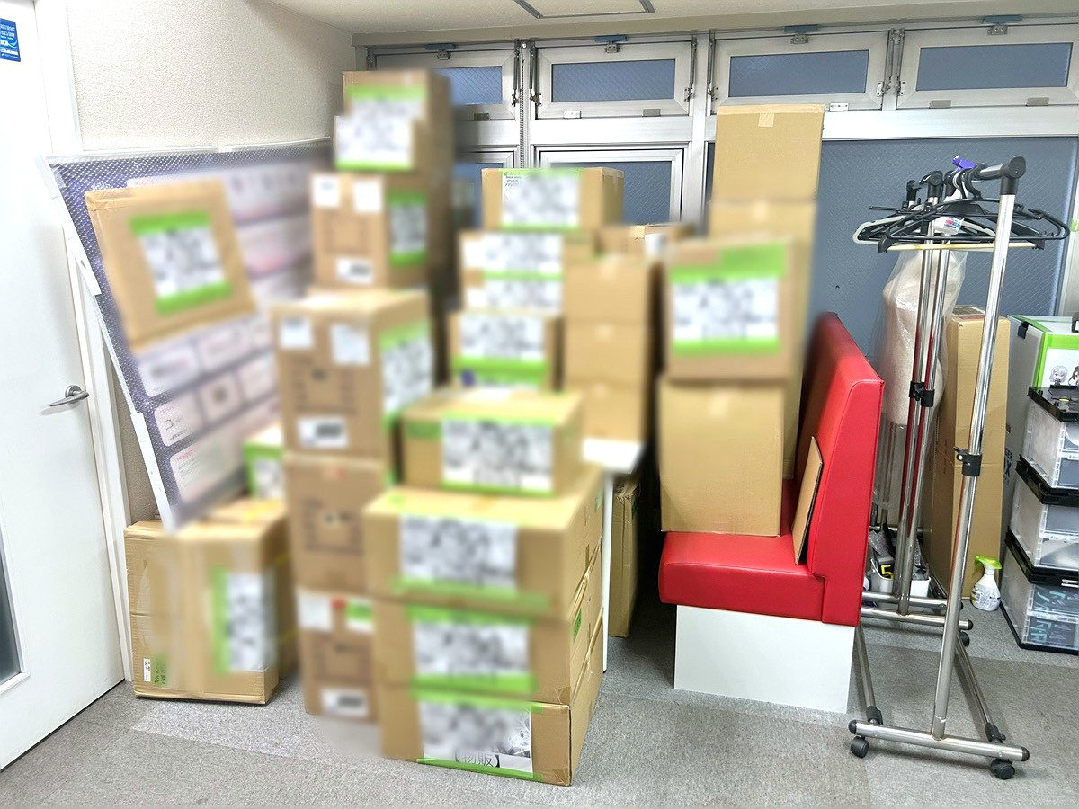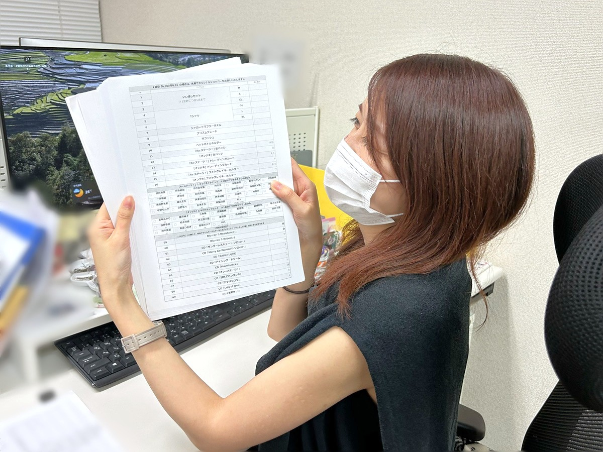 公演日の約1週間前、大量のグッズがオフィスに届き、検品作業が始まりました。