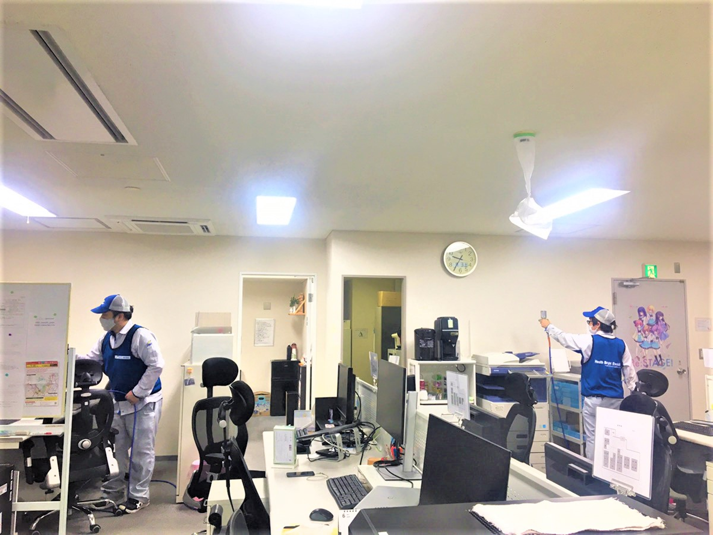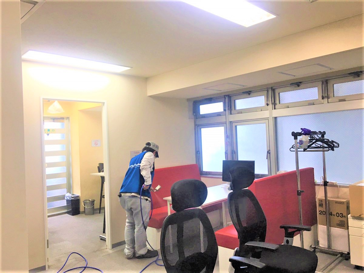hotarubiでも、従業員が安心して仕事に取り組むことができる環境を整えるため、先日業者の方に【HBEコーティング(※)】をメインオフィスおよびサテライトオフィスに施工いただきました。