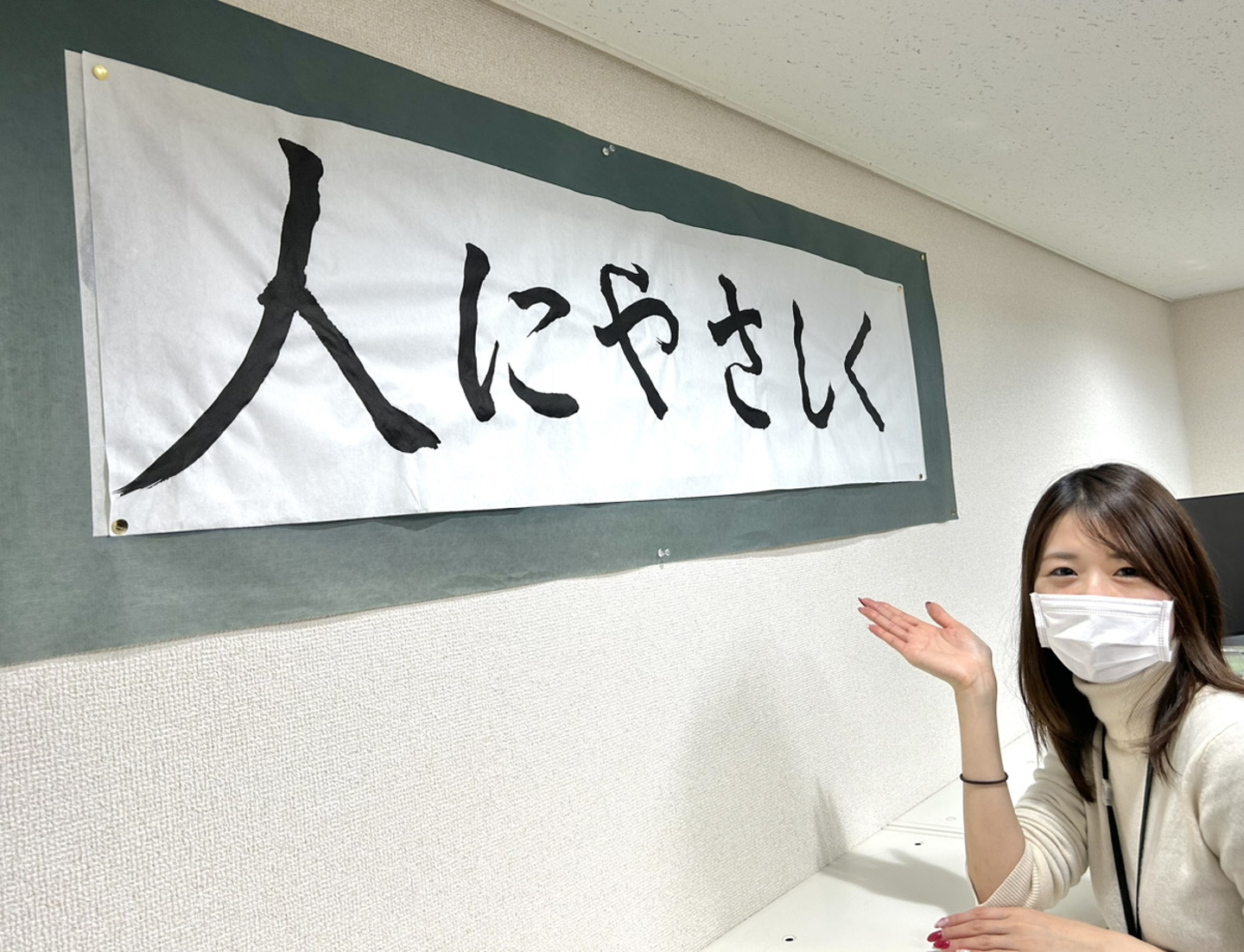 今年度のスローガンは「人にやさしく」。様々な思いが込められているこちらのスローガンをもとに、社員一同今年度も業務に取り組んでいきます!