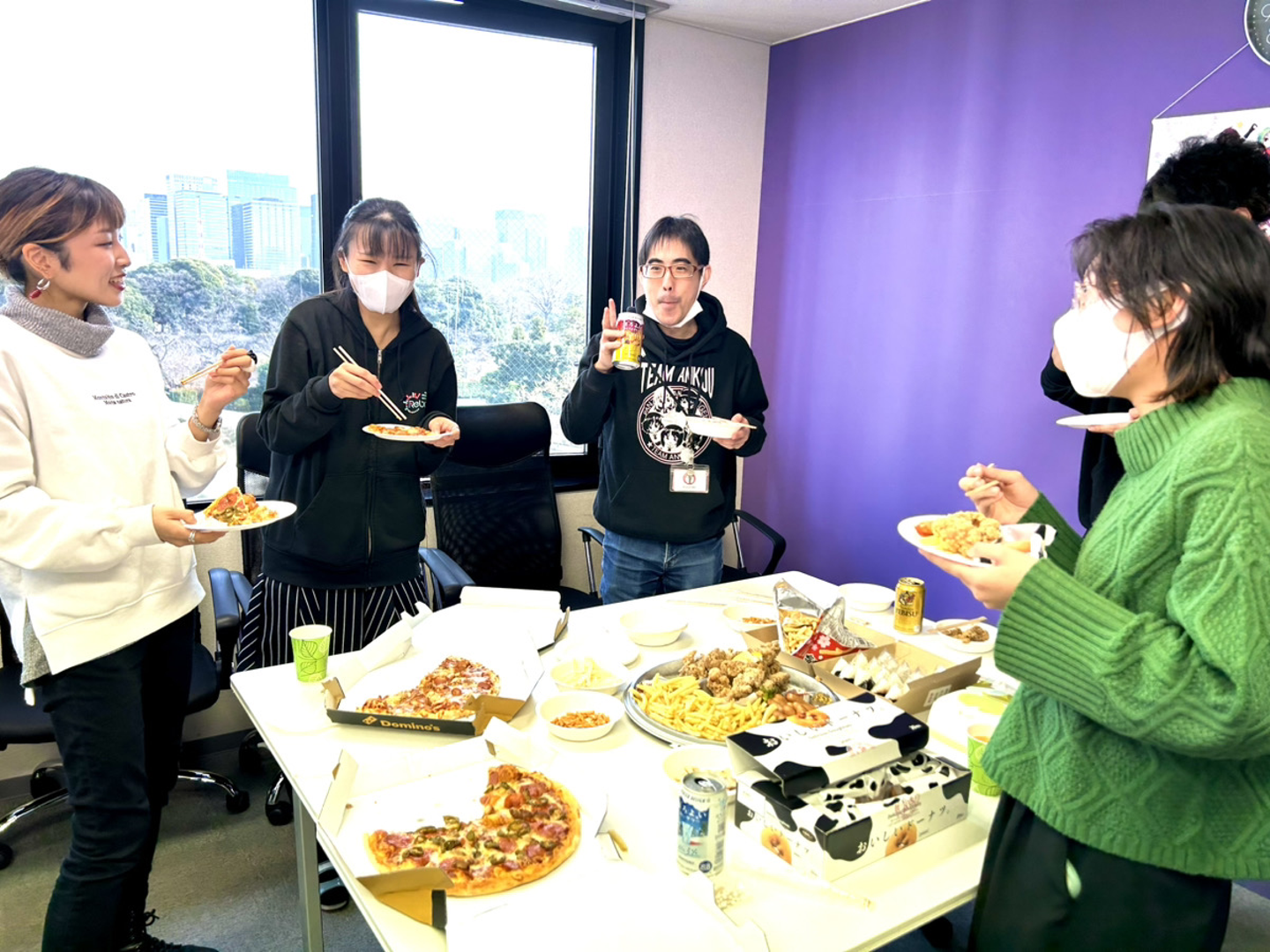 社員同士で「お疲れさまでした!」と声をかけあいながら、乾杯をしてまわっている様子を見ていると、1年が終わったんだなぁという気持ちになります。