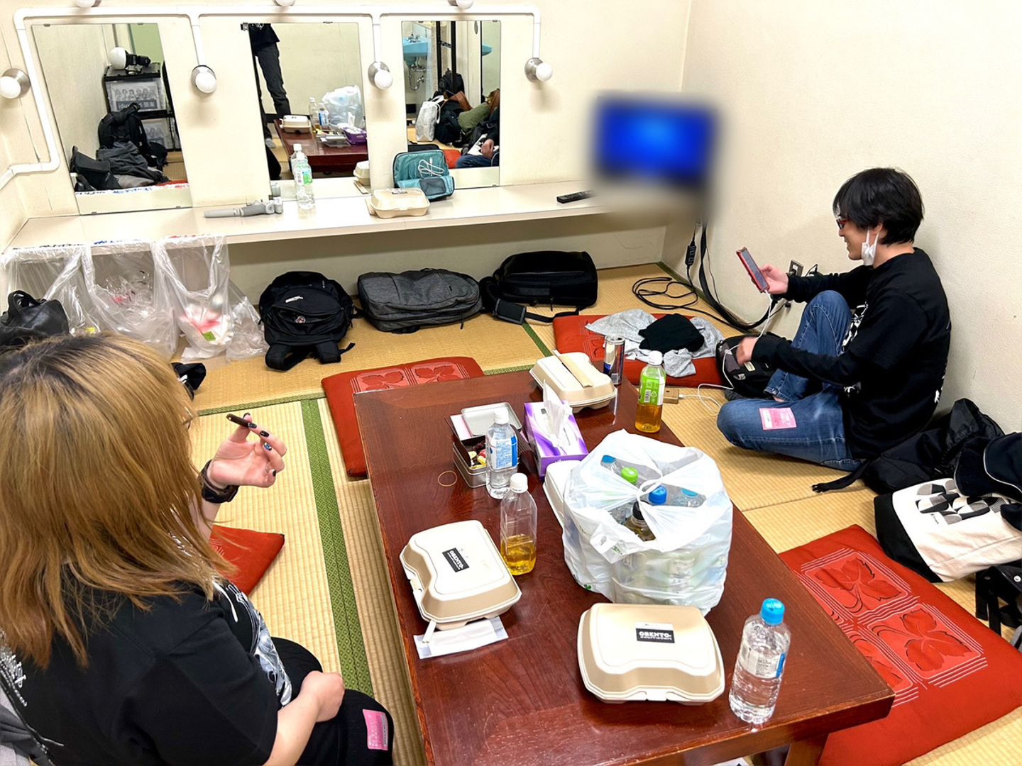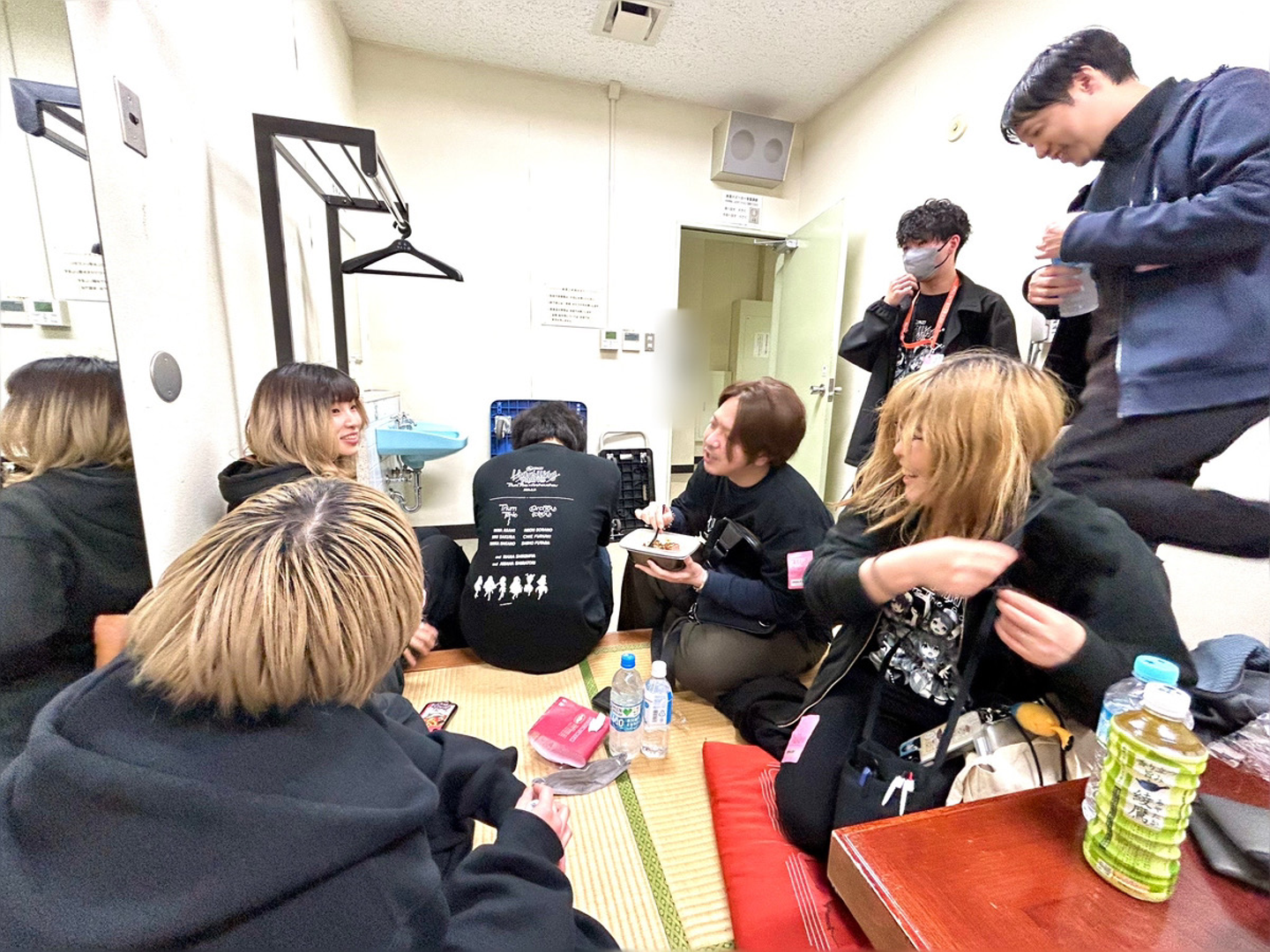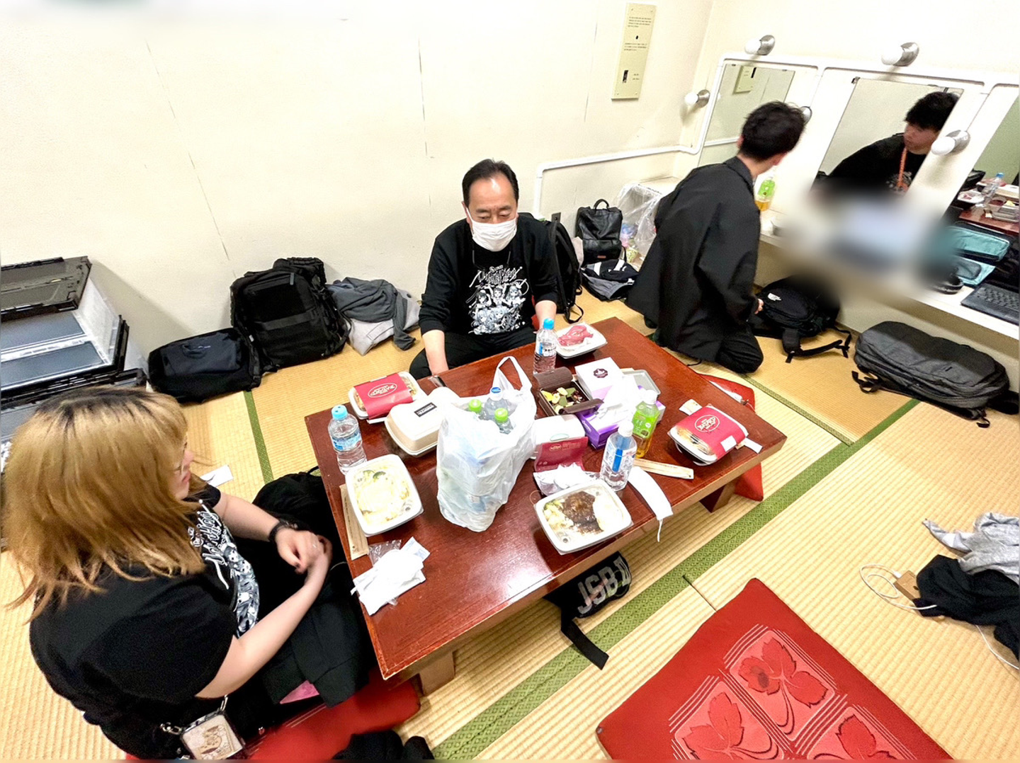 スタッフ達の様子を見に行った後は楽屋に戻り、他のスタッフ達と談笑しながら過ごしていました。公演のセットリストは私たちも当日に知ったので「ここでこの楽曲を持ってくるなんて、お客さん達絶対喜んでくれますね!」「この曲、私が一番好きな曲です!」等々、盛り上がっていました(笑)