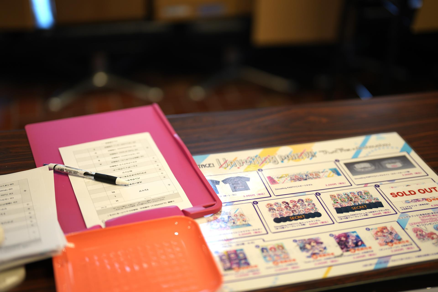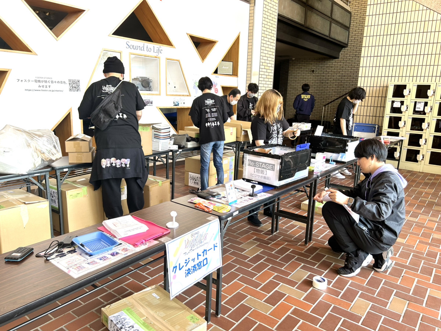 とは言うものの、物販に必要な備品類やグッズの搬入、机の設置は関口よりも前に会場入りしていたスタッフ達が対応してくれていたので、関口含めこの時間に会場入りした物販スタッフ達は、レジの準備や備品類の設置を主におこないました。
