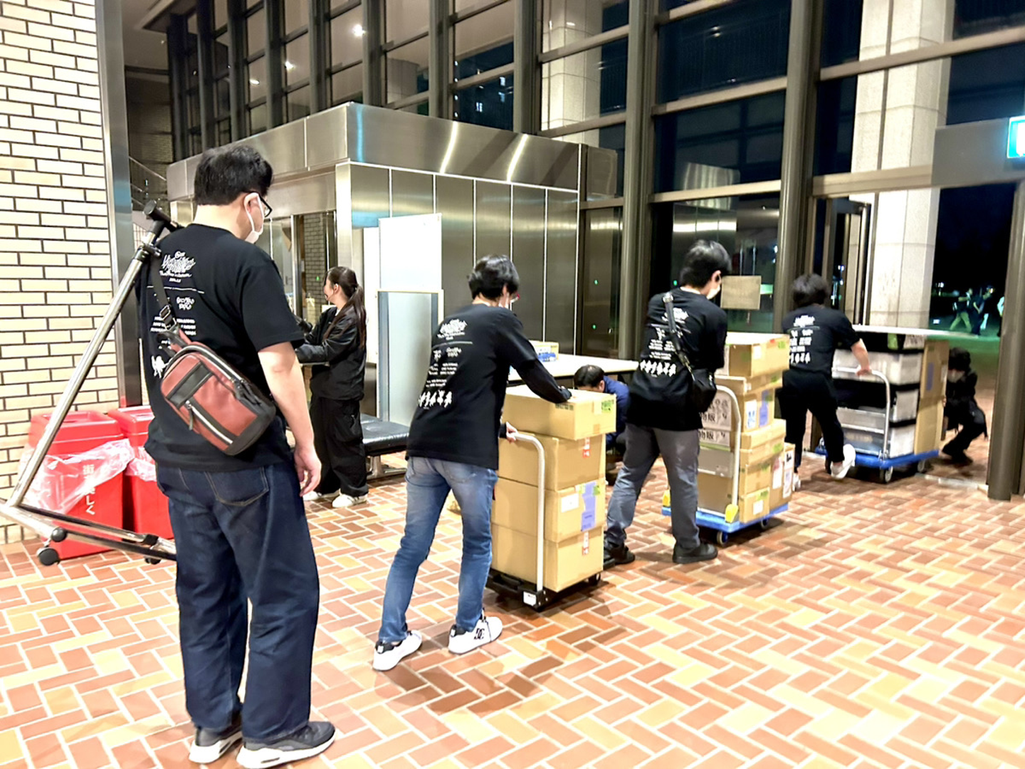 終演後物販のブースは、退場されるお客さん達の導線に合わせて移動させる必要があったため、スタッフ同士協力しあいながらブースを移動させていきます。