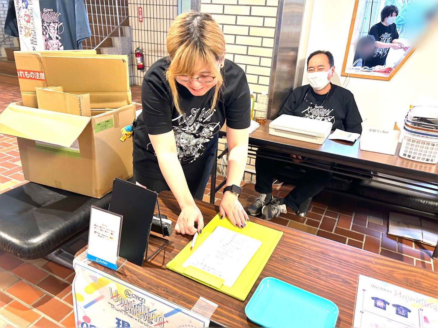 制作スタッフや関係者受付のスタッフ、そしてもちろん物販スタッフ達もですが、真剣に仕事に取り組んでいる姿はやはり"プロ"だと感じますし、素直に格好いいなと思えます。同じ会社で働く者として、とても誇らしい気持ちになりました!