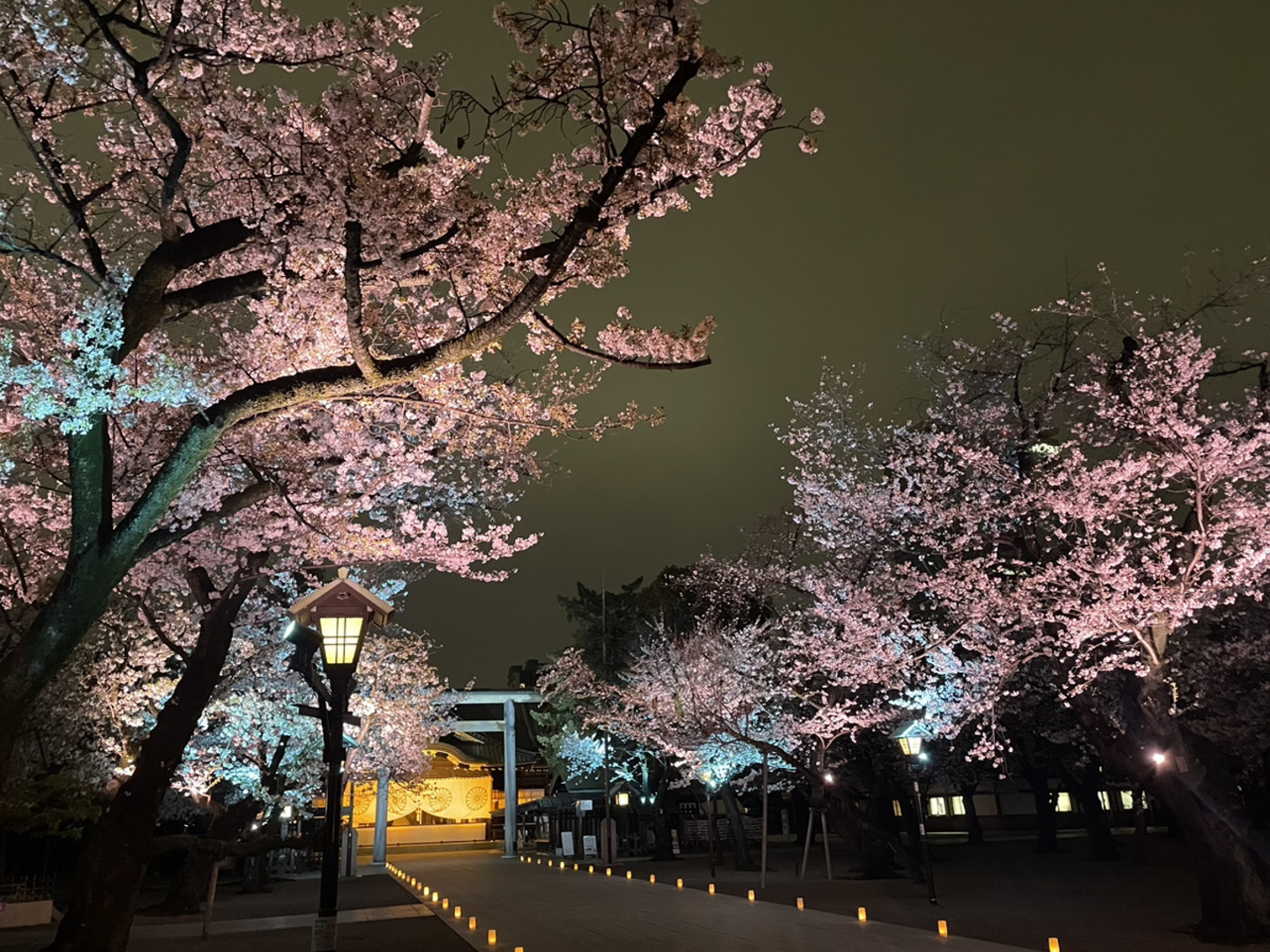 今年は桜の開花が遅かったものの、九段下は例年どおりお花見を楽しむ方々で賑わっていました。特に、靖国神社に咲いていた桜のライトアップはとても綺麗でした!