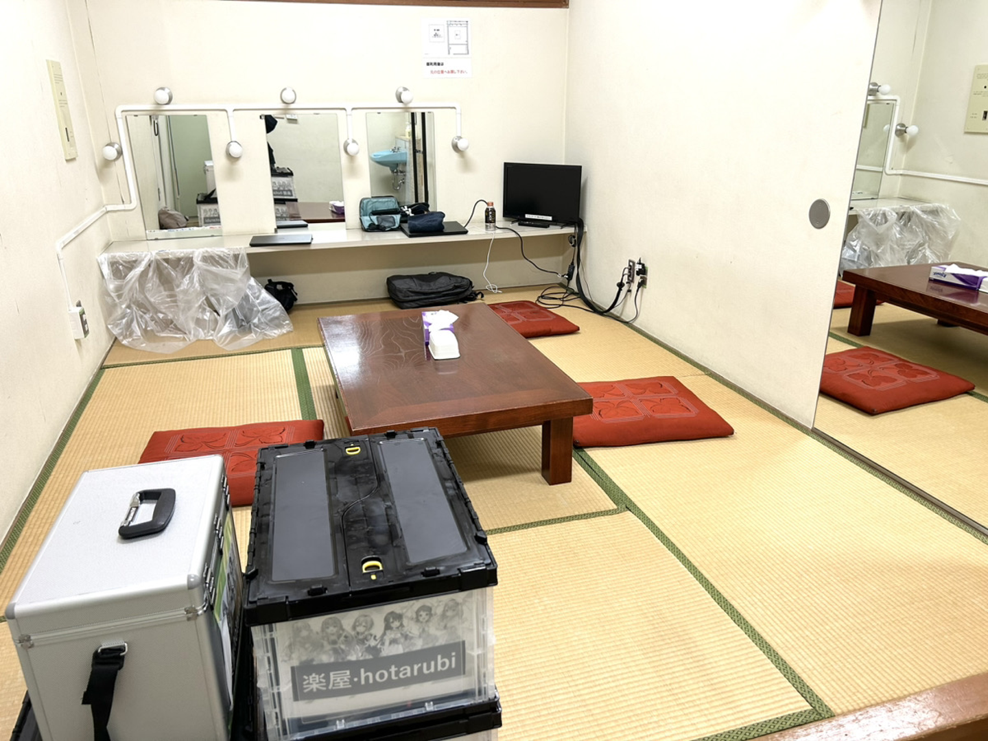 会場に到着したら我々スタッフは楽屋口から入り、まずはhotarubi用の楽屋へ向かいます。