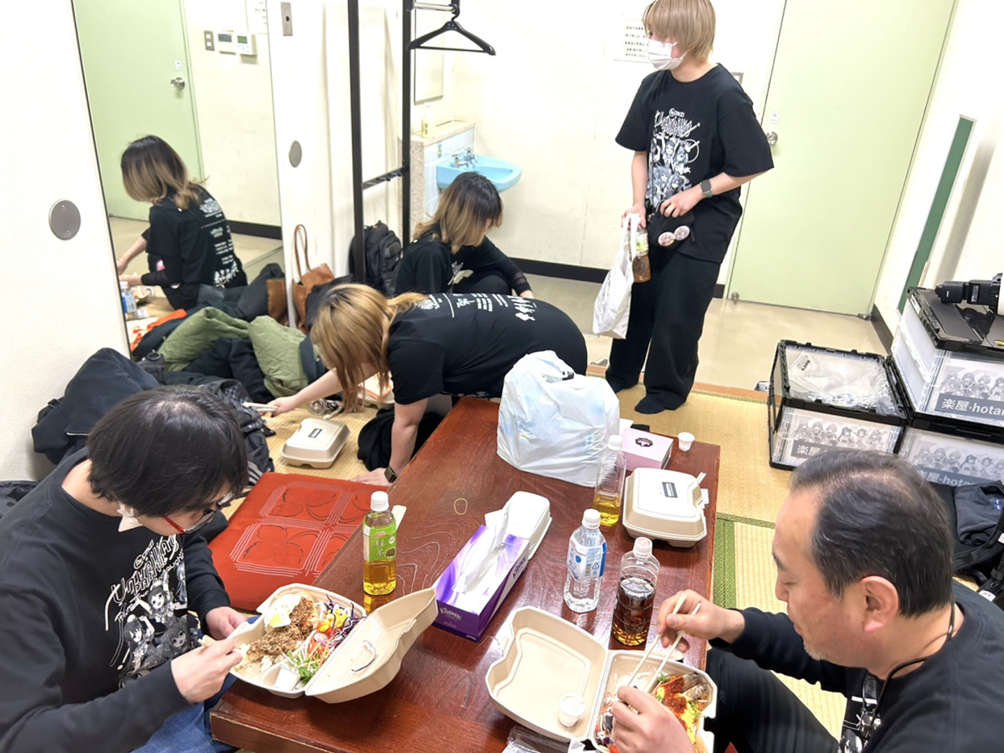 物販ブースの移動が完了したら、楽屋に戻って夜ご飯です。