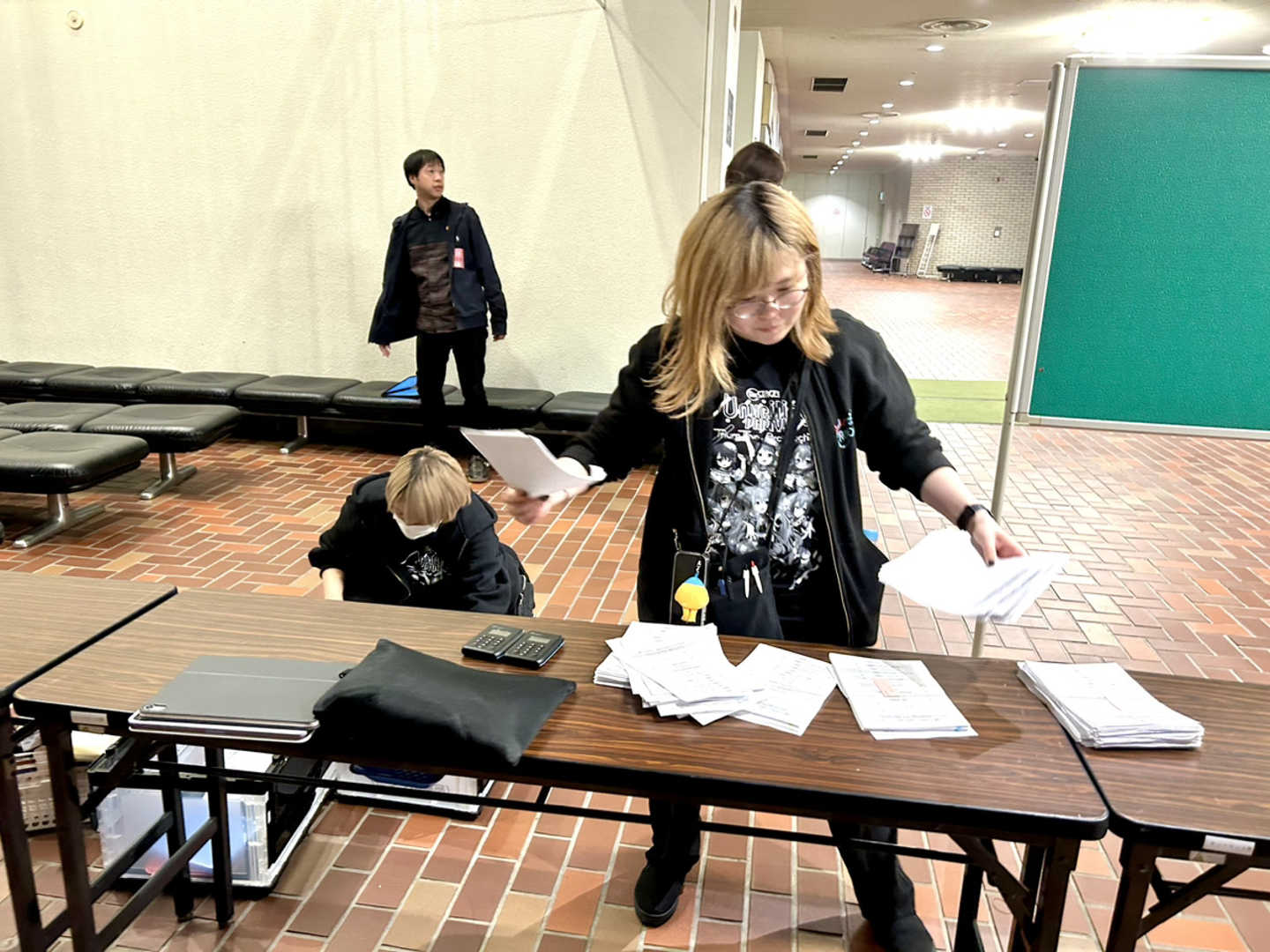 また、物販ブースを移動させたタイミングで関係者受付の準備もおこなわれていたのですが、限られた時間の中で準備をおこなっているスタッフ達はとても真剣な様子でした。