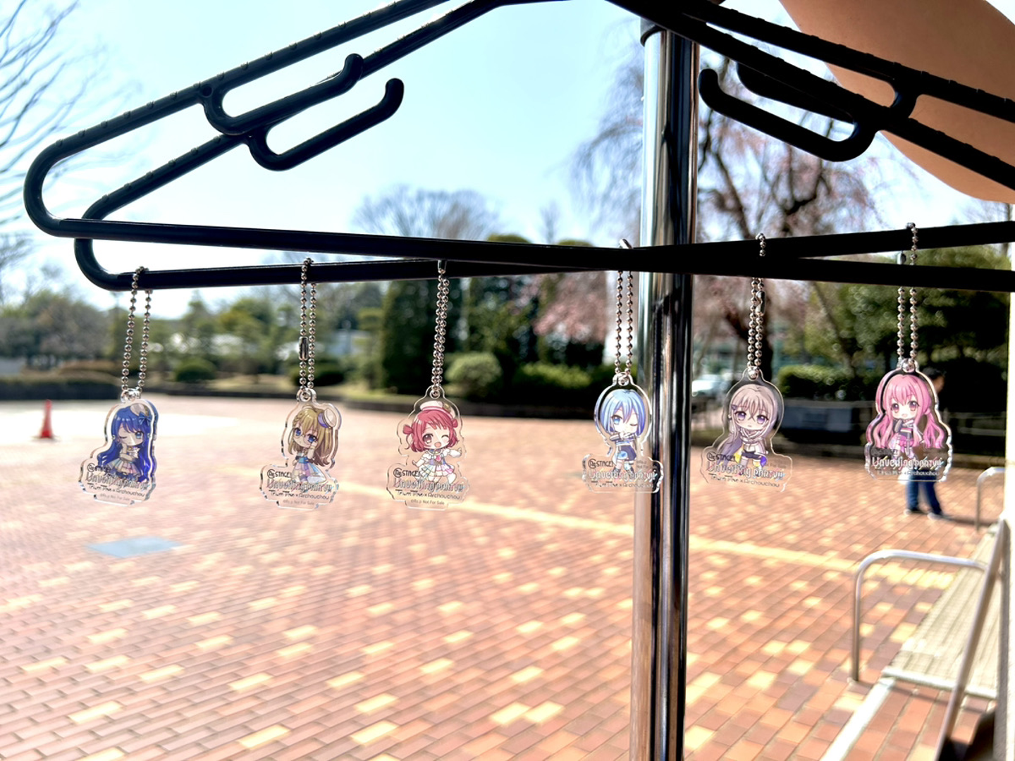 先行物販は3時間という長丁場のため、休憩をまわしながらおこないます。関口も小休憩をいただき外で過ごしていたのですが、サンプル展示していた特典用のアクリルキーホルダーに日光が反射し、キラキラしていて綺麗でした…!
