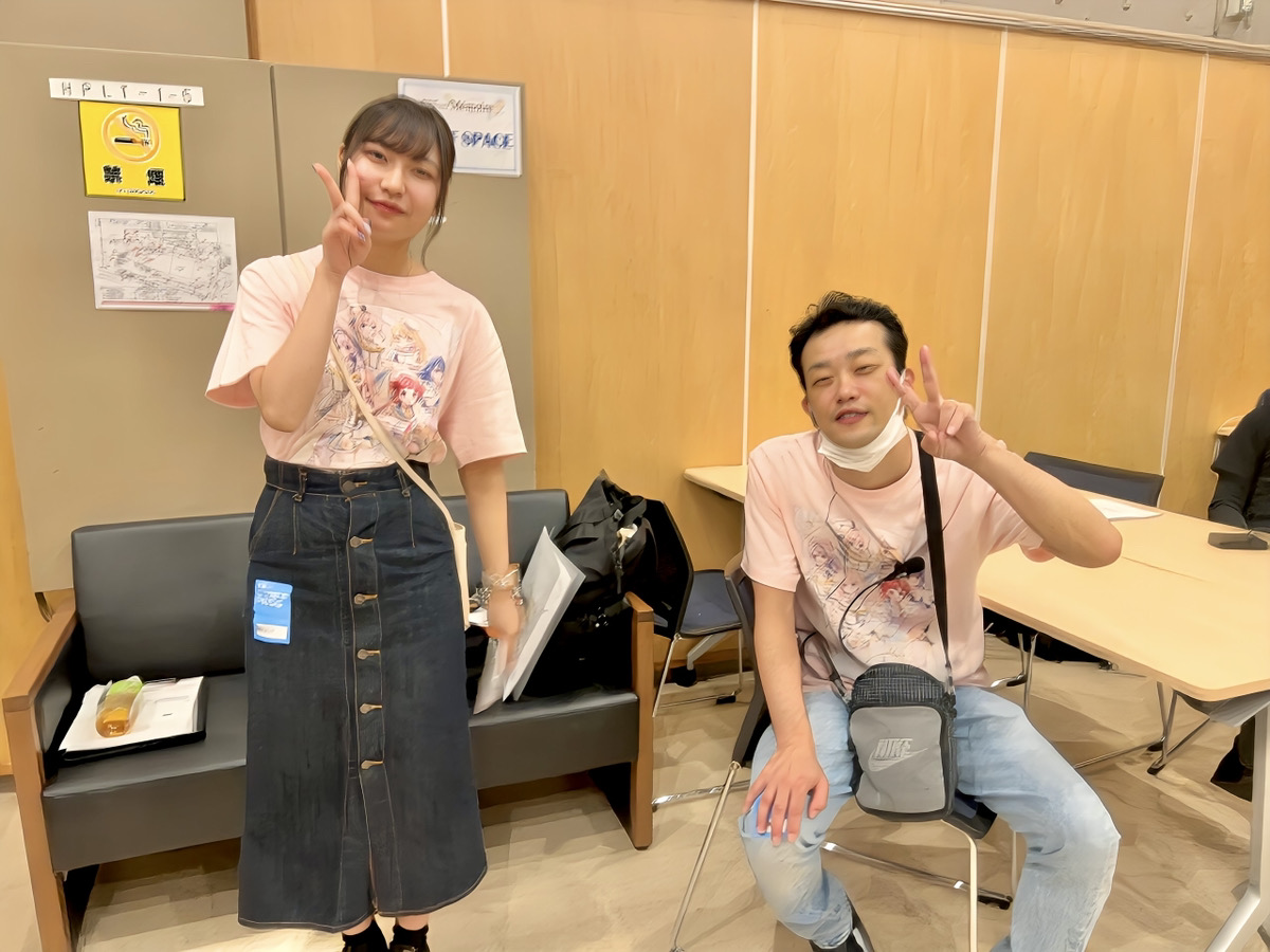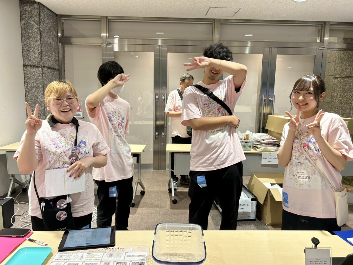 スタッフ達の邪魔をしないよう物販ブースへ戻った後は、他のスタッフ達と談笑しながら終演後物販まで待機です!