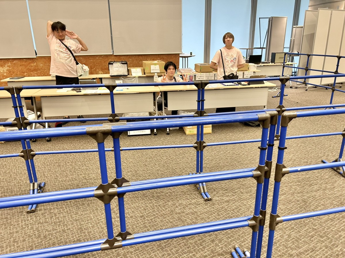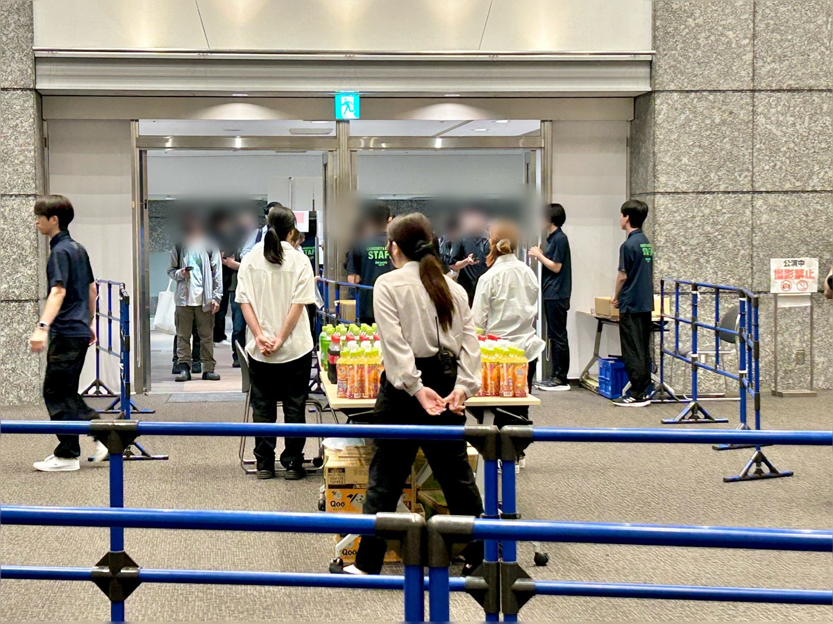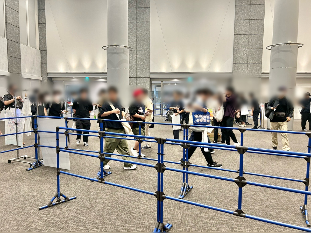 ブース前に設置された整列用のパイプフェンスを見て、「まるで動物園の動物になった気分だね」とスタッフ同士で冗談を言い合う場面もあり、開場前のスタッフ達の様子はとても和やかでした。
