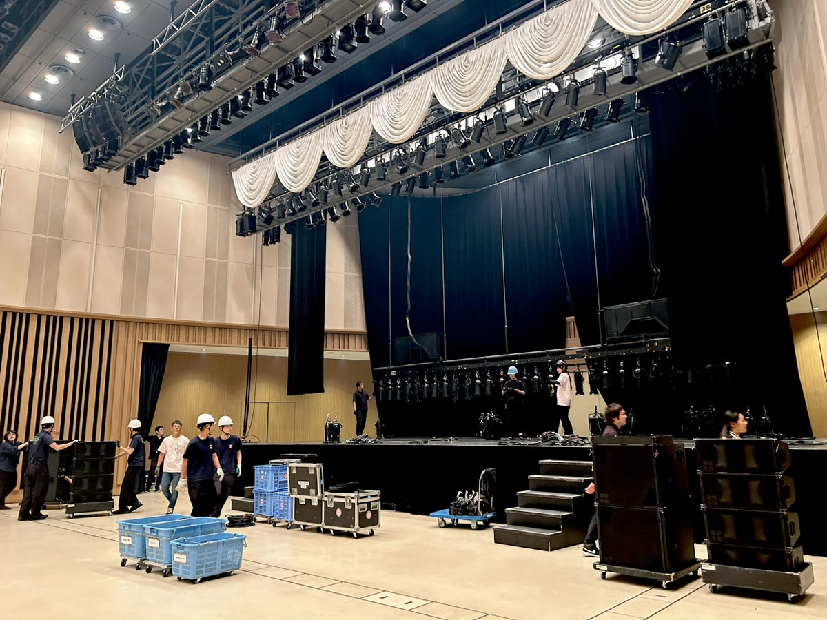 トラックへの積み込みが終わったら、楽屋へ戻ります。楽屋へ戻る途中、ホール内の片付けの様子も見ることができました。