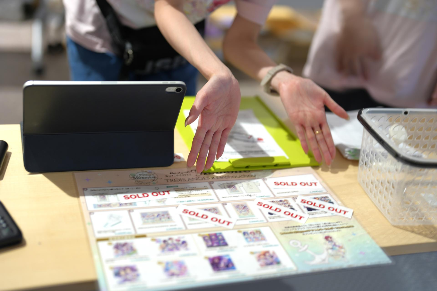 設営後、物販の動きについて説明を受けたら、いよいよ先行物販開始です!