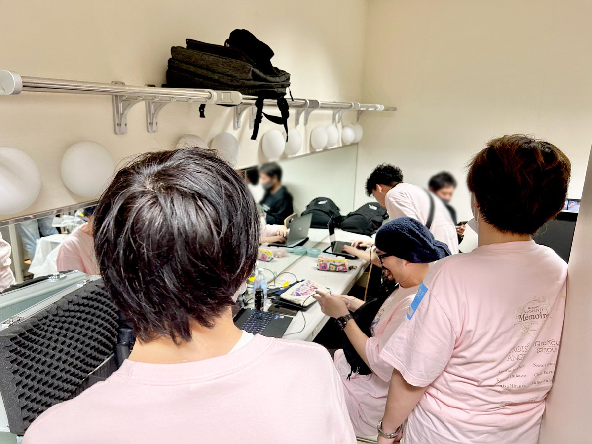 舞台袖には撮影担当や映像担当、キャスト対応をおこなっているスタッフ達がいました。こちらも比較的和やかな雰囲気で、スタッフ達には笑顔が見られました。