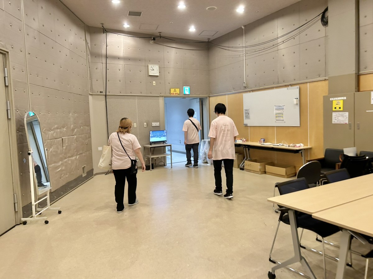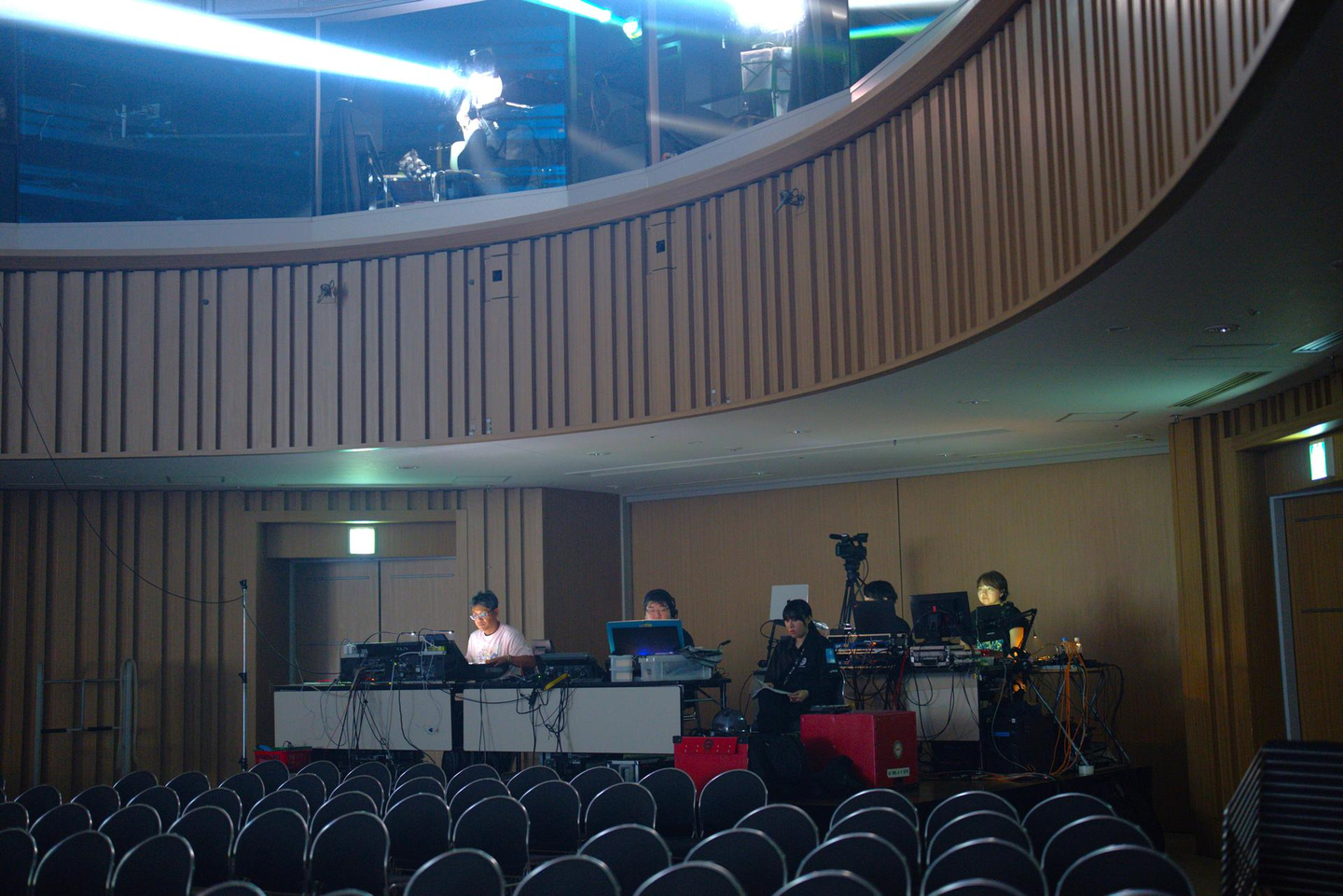 昼食を食べ終えたら、舞台袖にいるスタッフ達の様子を見に行きます。