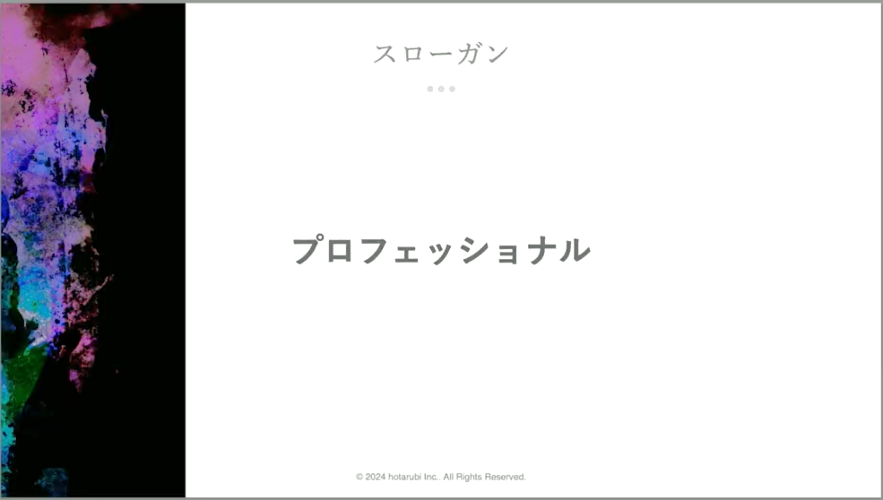今月から、hotarubiは12期目に突入いたしました。先日実施された新年度の体制説明会では新しいスローガンも発表されたので、この場でも発表させていただきます。