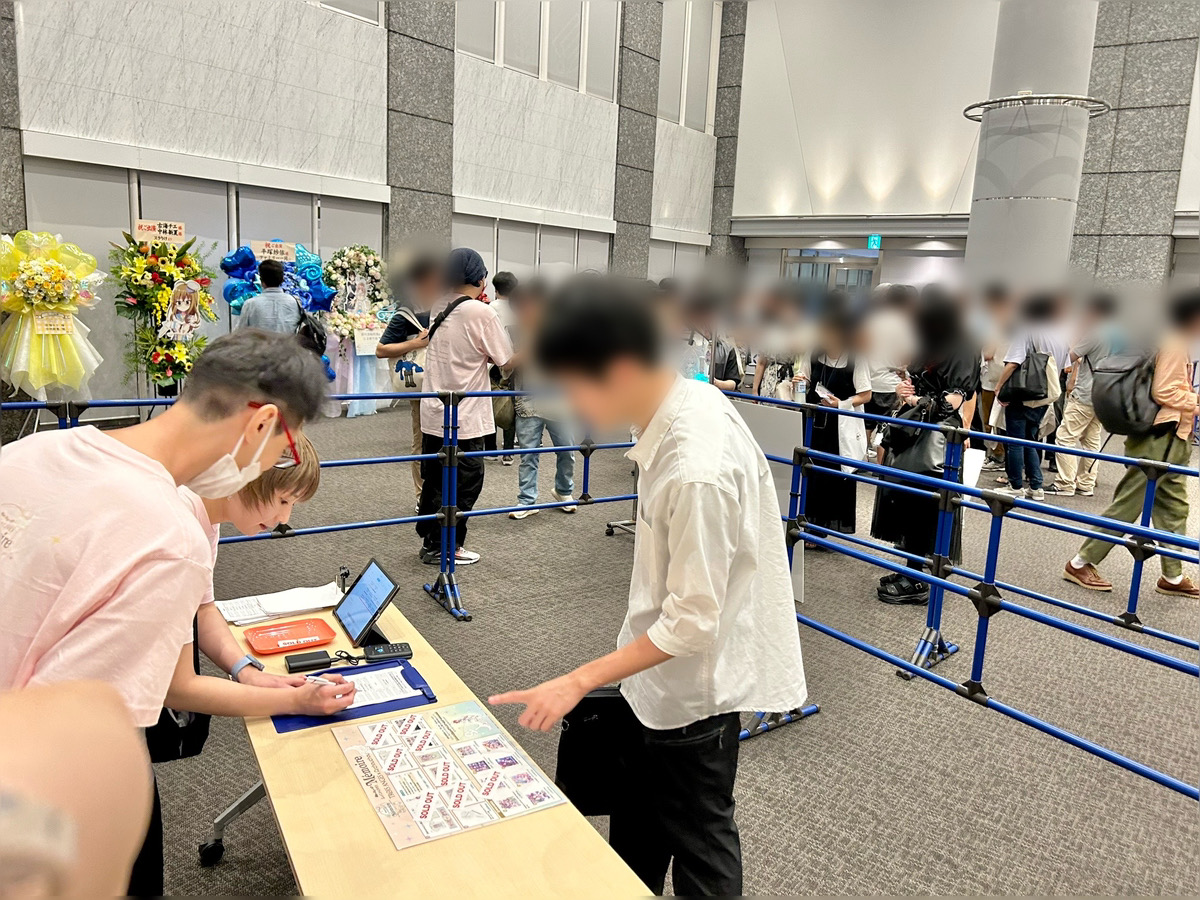 物販ブースのすぐ隣にはキャストさんに向けたフラワースタンドが飾られていたので、そちらの写真を撮影されているお客さんも多くいらっしゃいました。