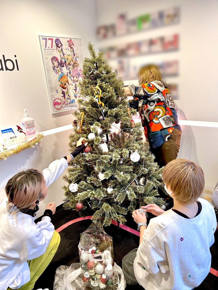 控えめに1つだけ飾るスタッフや、気合をいれて大量に飾ってくれるスタッフなど様々ですが、スタッフ達の手によって装飾されたツリーは、事務スタッフだけで装飾したツリーよりも格段に綺麗に見えます!