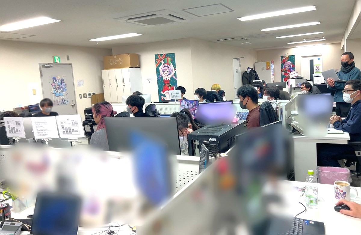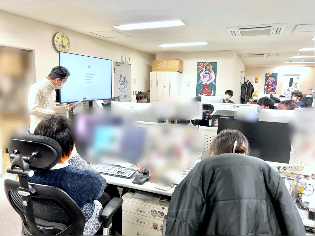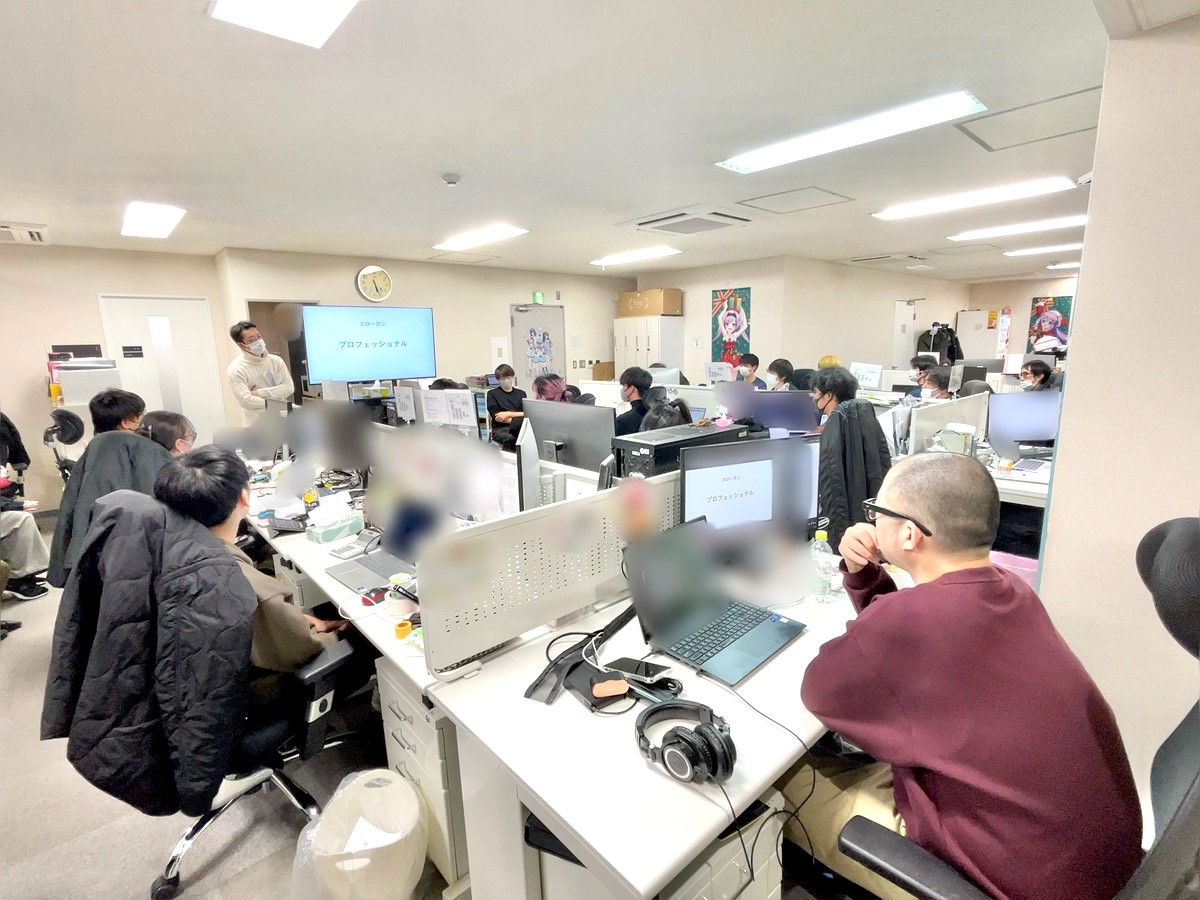 全社会はスタッフ全員が参加するため、サテライトオフィスにいるスタッフもメインオフィスに来ておこなわれます。なお、テレワークをおこなっているスタッフは、オンラインでの参加となります。