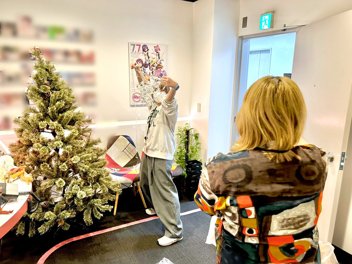 ちなみに今年は、執務室内にクリスマスの衣装を着た「Re:ステージ!」キャラクターのタペストリーを飾りました。