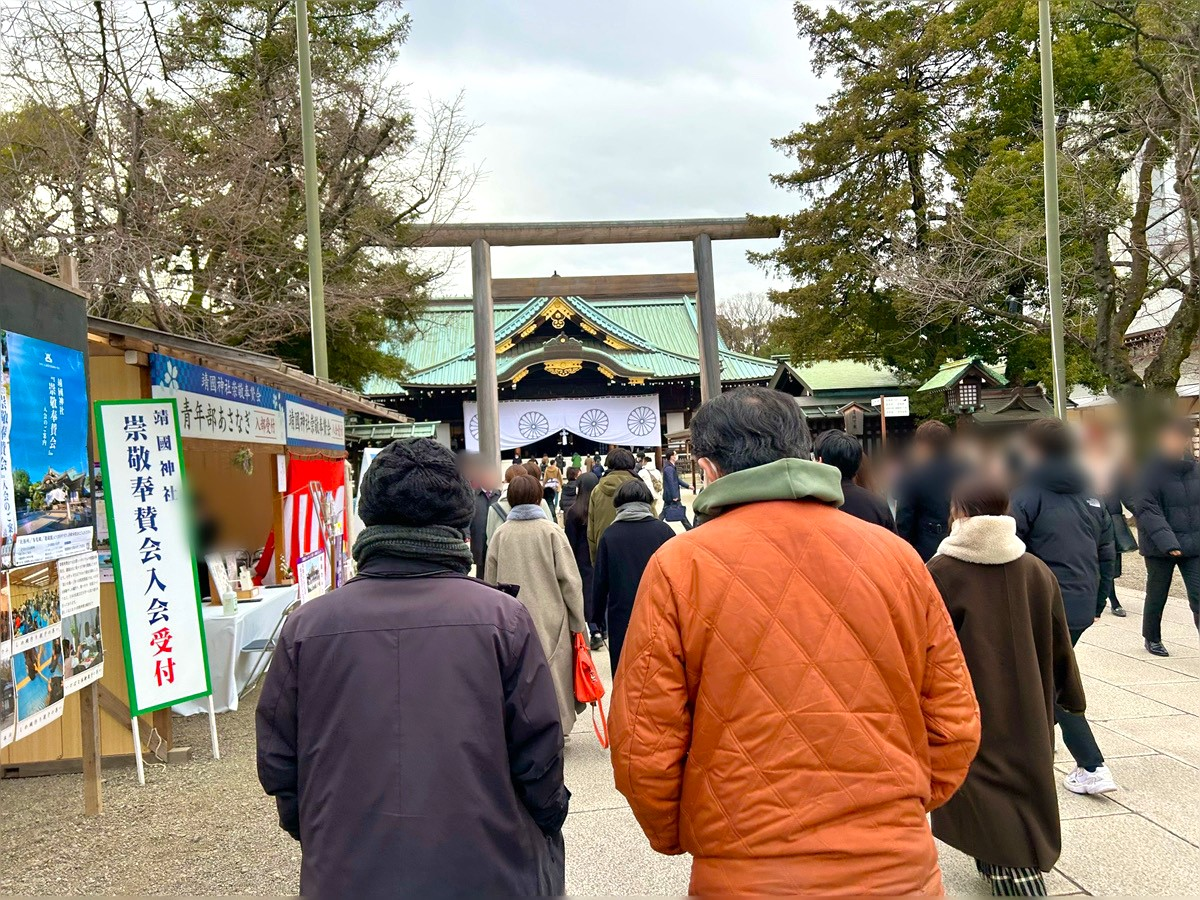 靖国神社はオフィスから徒歩数分のところにあるのですが、3が日を過ぎた後でも多くの方で賑わっており、会社員だけでなく学生や幼稚園生の姿も見られました。