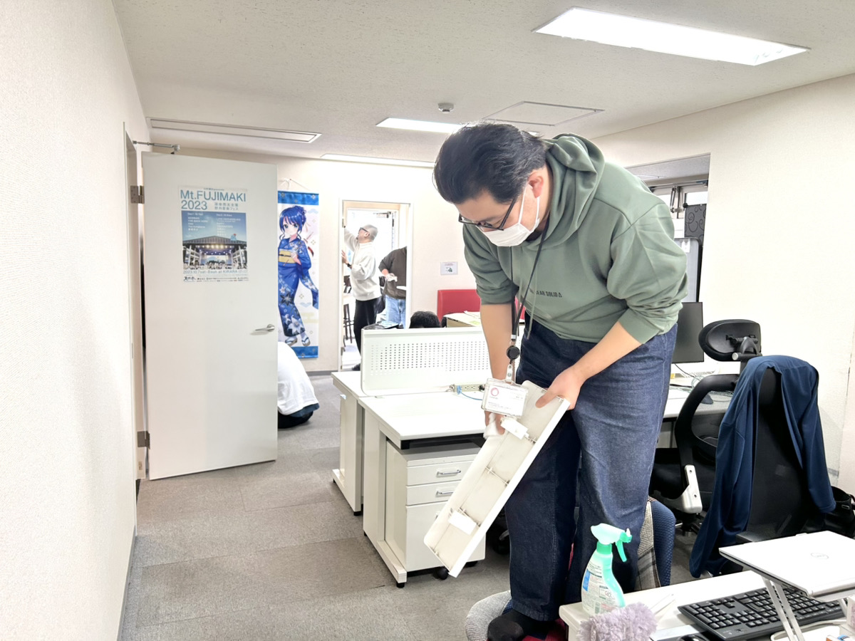 掃除をおこなう場所は、事前に事務スタッフがエリアごとに担当者を割り振っています。各エリアには掃除リーダーがいるので、当日社員の皆さんは、各エリアの掃除リーダーの指示のもと掃除をおこなっていきます。
