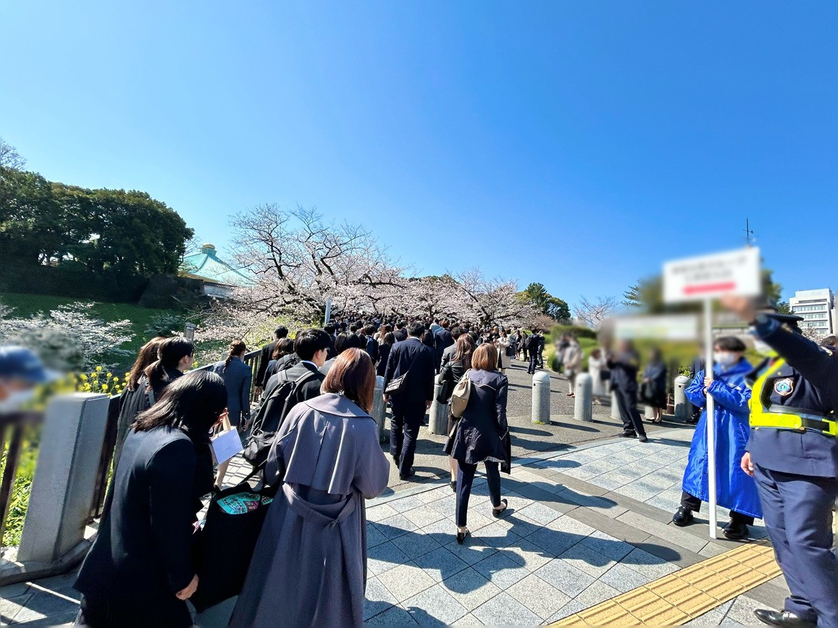 4月に入りようやく桜が咲き始め、九段下はお花見に来る人達と大学の入学式で、賑わっていました。