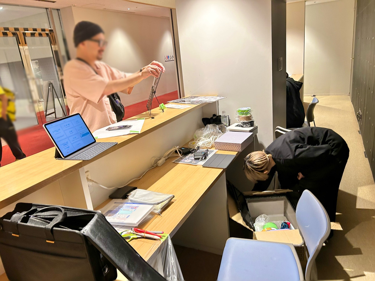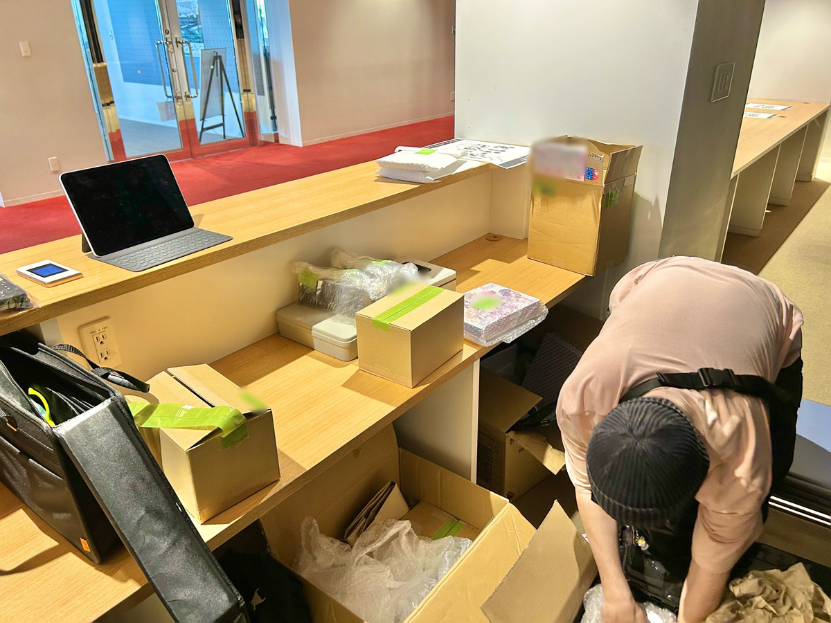 会場に到着したら物販ブースへ向かい、早速準備に取り掛かります。