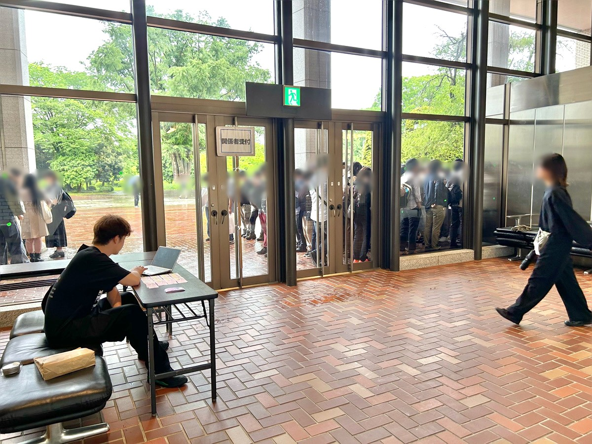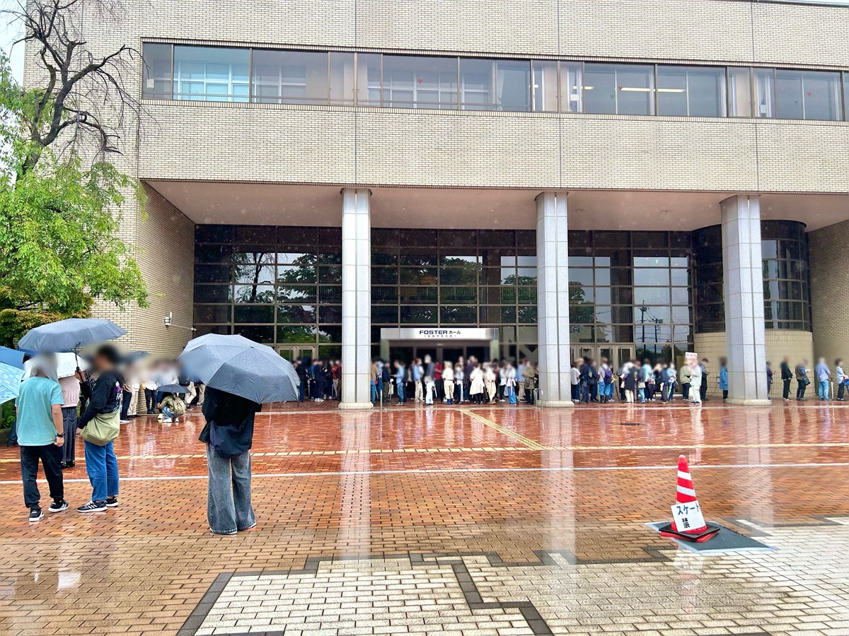 当日はあいにくの雨でしたが、会場前にはすでに多くの人が集まっていました。