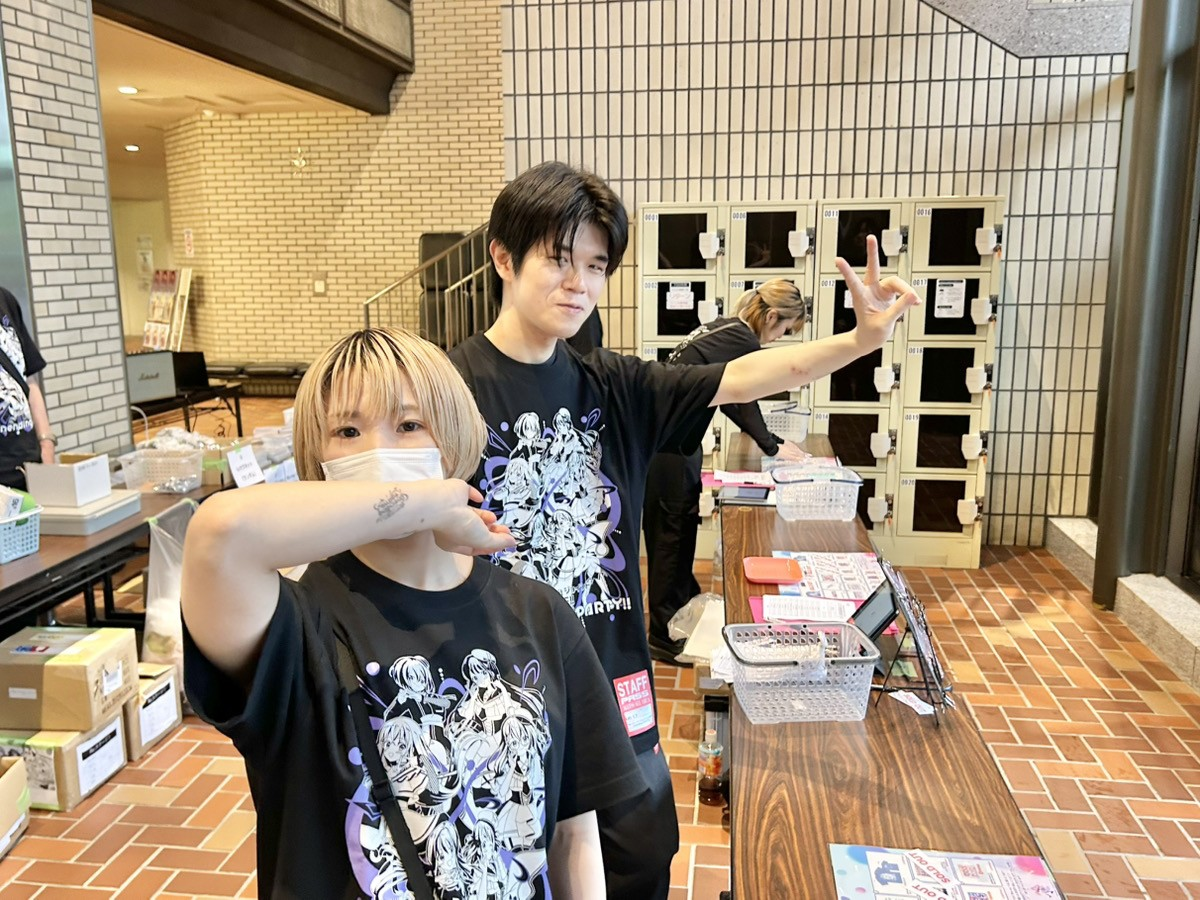 楽屋に着いたらさっそくスタッフTシャツに着替え、物販ブースへ向かいます!