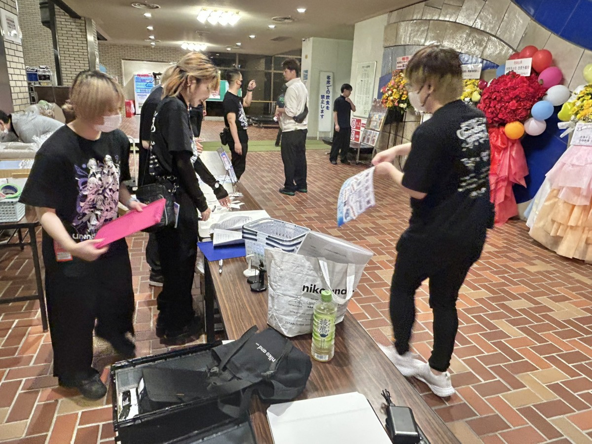 そうこうしているうちに、2部開場時物販の時間が迫ってきました。急いで物販の準備をおこない、お客さんの入場まで待機します!