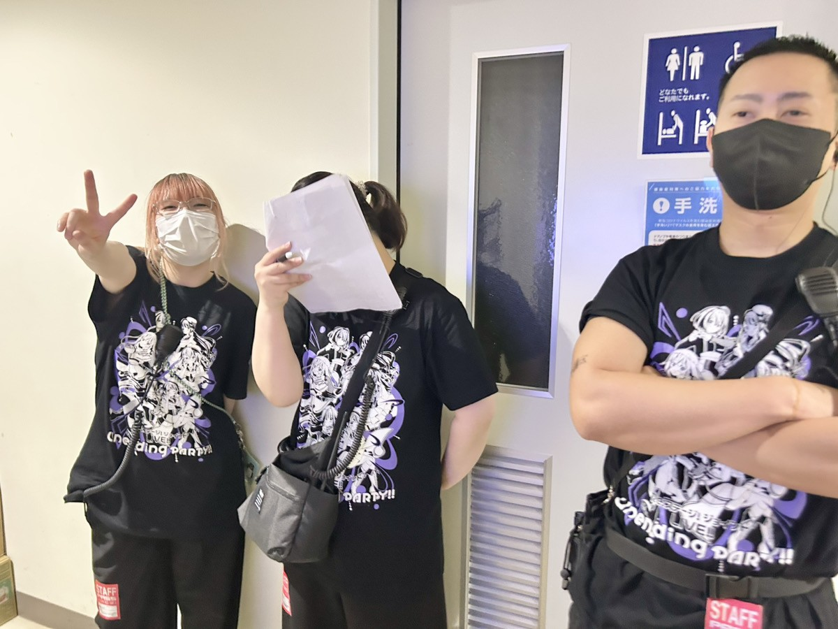 楽屋へ向かう途中で、楽屋担当のスタッフ達に遭遇しました。