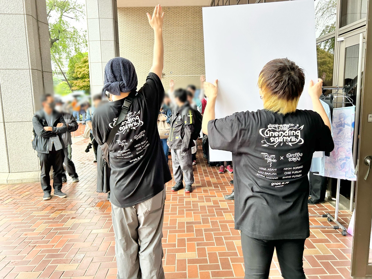 とはいえ30分間はあっという間で、気づけば1部開場時物販開始の時刻となっていました。外を確認すると、開場を待つお客さんが大勢並んでいます!