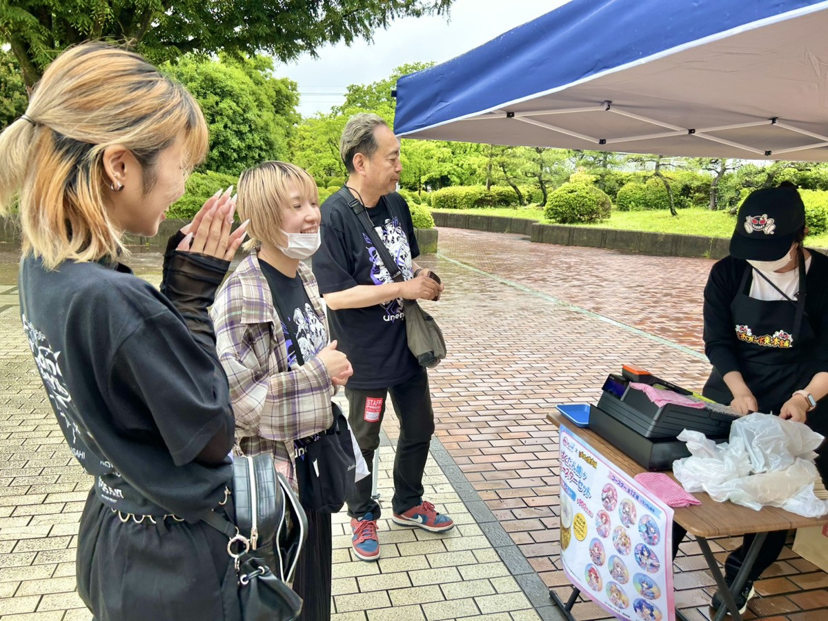 お腹も心もいっぱいになったところで物販ブースに戻り、退場されるお客さん達をお見送りします。お客さん達の笑顔を見ていると、こちらも笑顔になれます!