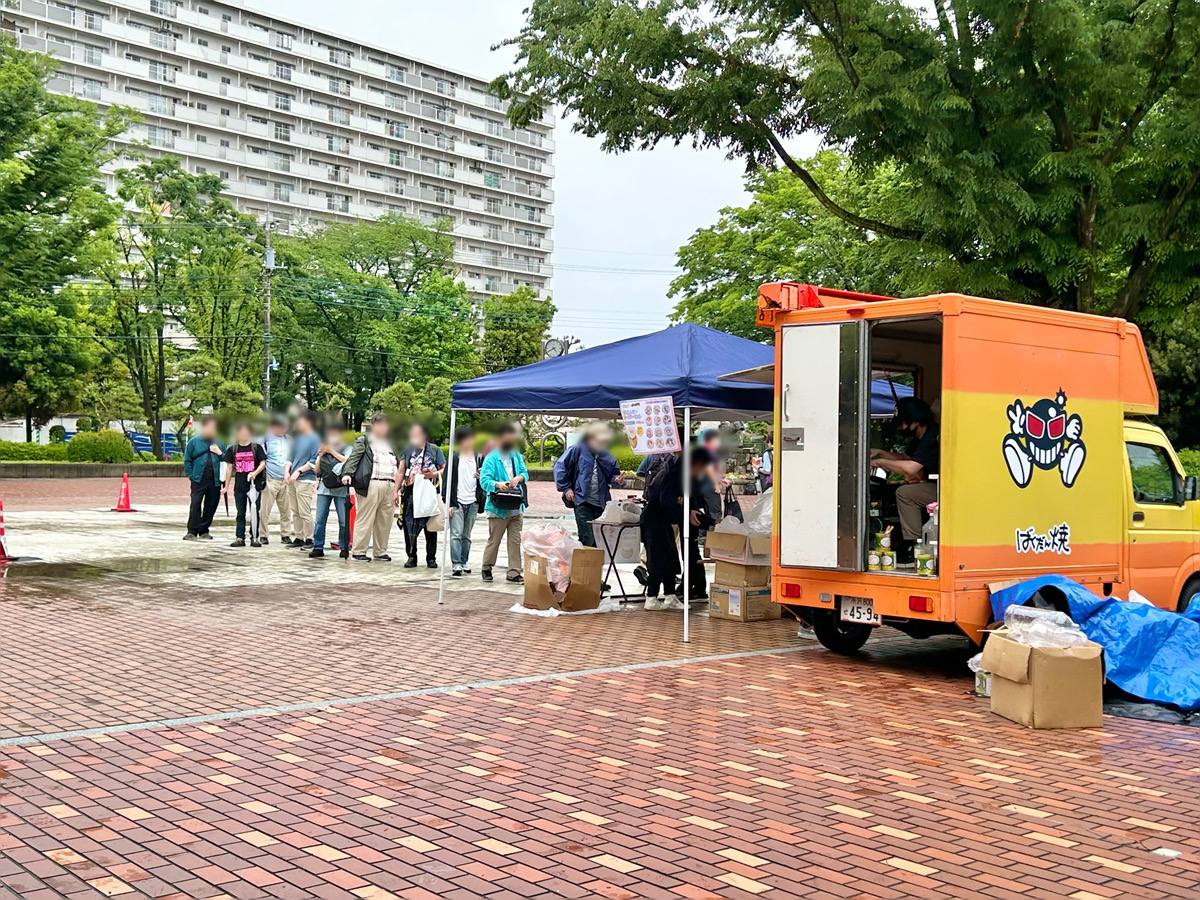 物販ブースの整理整頓が完了したら、待ちに待ったお昼休憩です!今回は「ばくだん焼き本舗」さんとのコラボで、会場にはキッチンカーが出張で来てくれていました。