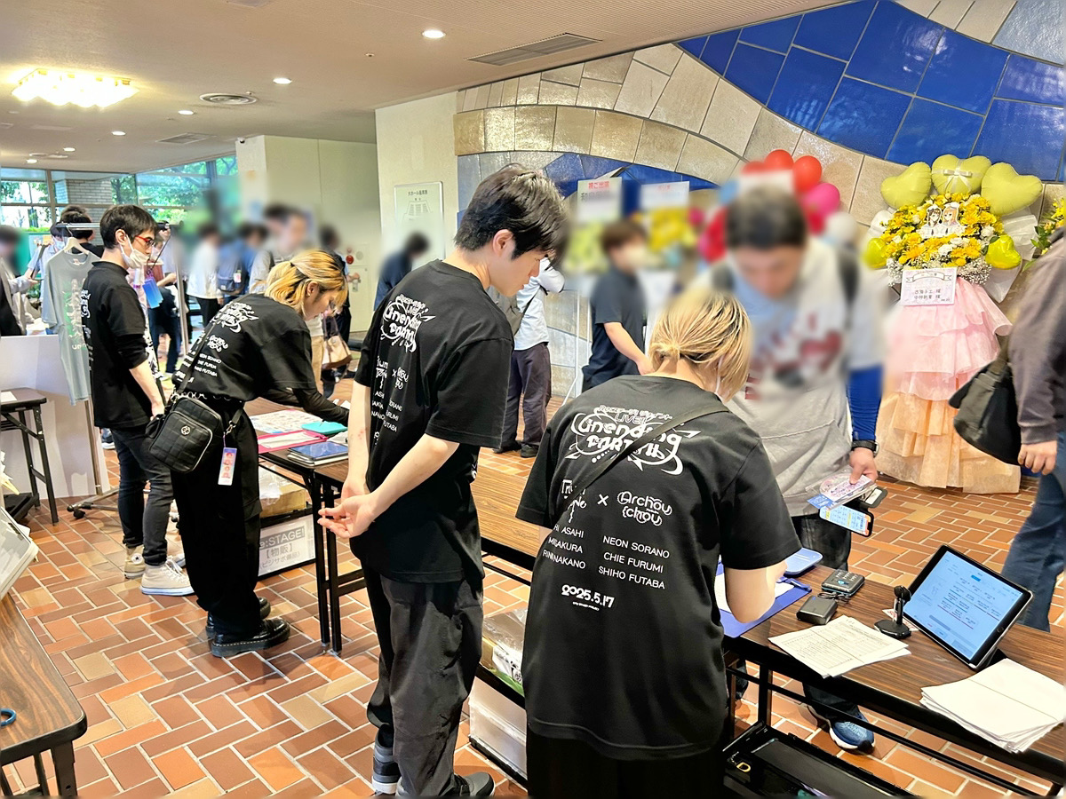 チケットなしでグッズを購入できるのは先行物販のみということもあり、毎回先行物販には多くのお客さんがいらっしゃいます。1会計あたりのグッズ購入数も多いので、レジに表示された金額を見るとドキドキしてしまいます!