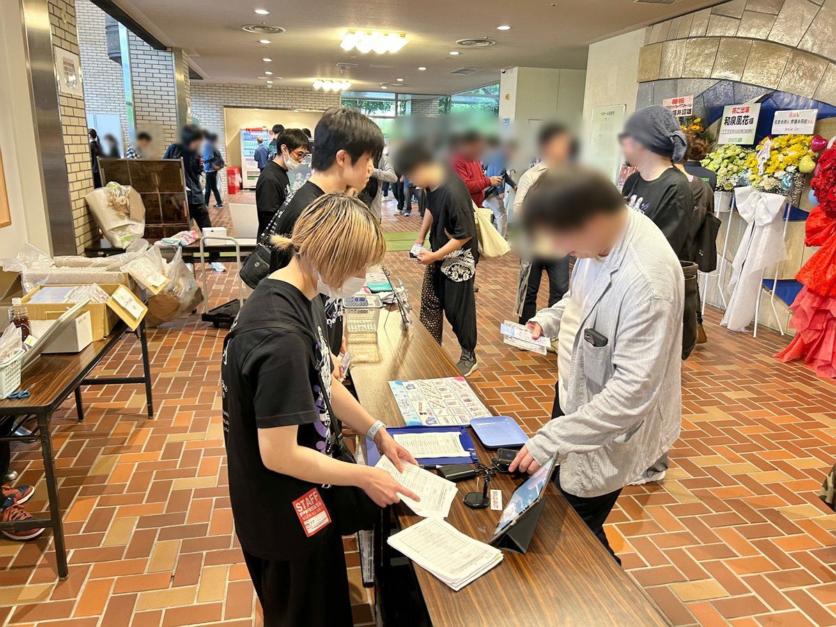 開演間際に物販ブースに足を運ばれる方は急がれている方がほとんどなので、物販スタッフもなるべく急いで対応するようにしています。我々スタッフとしても、公演を1分1秒も見逃してほしくないのです!