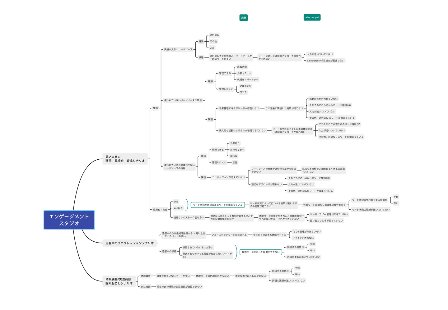 顧客課題を掘り下げる際に使用するマインドマップ