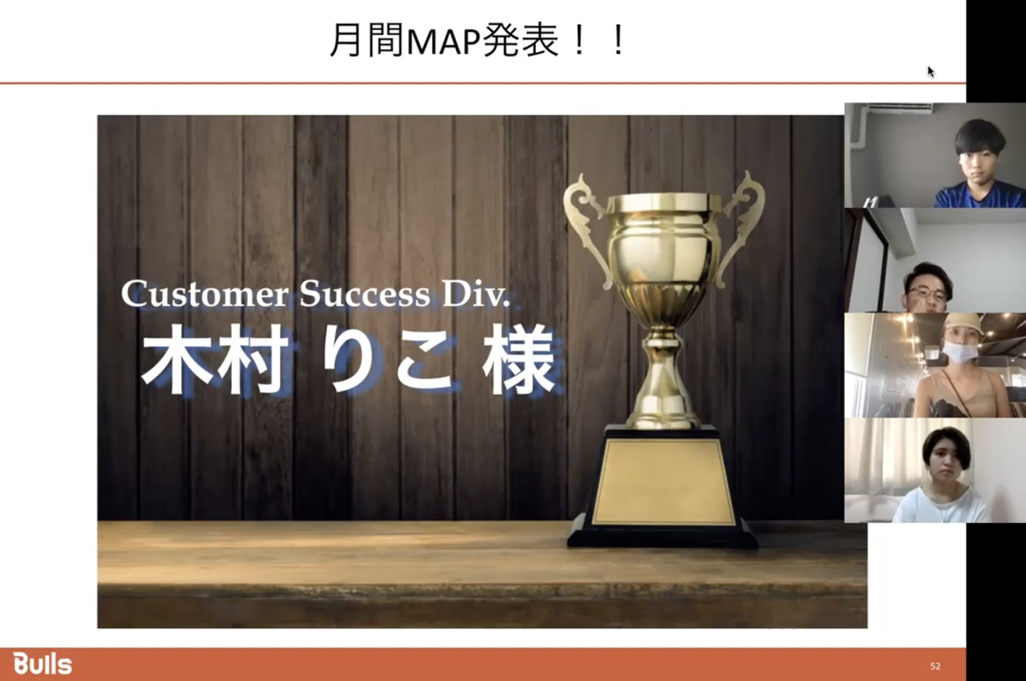 スピード感のある会社なので、社内は日々目まぐるしく動きますが、Bullsにはその中でもきちんと個々人を見て頂ける環境があり、自分でも気づけなかった成長を一緒に働くチームは見逃しません。(笑)