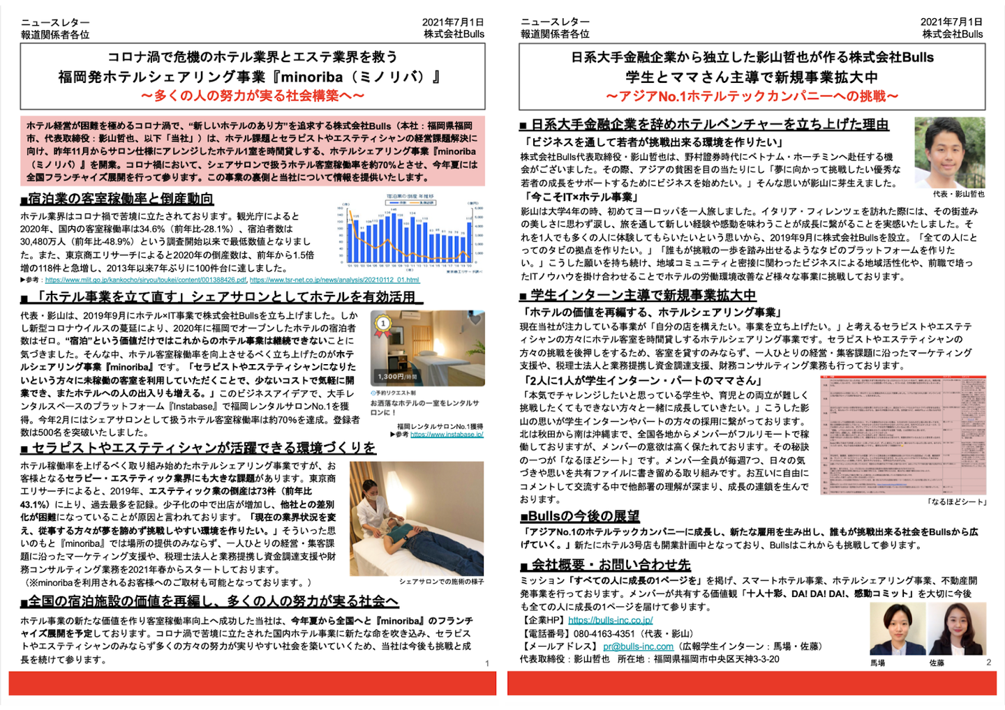 弊社は設立3年目を迎え、ホテルやサロンの空室をフリーランスのセラピストの方々に貸出すシェアリング事業で急成長しています。