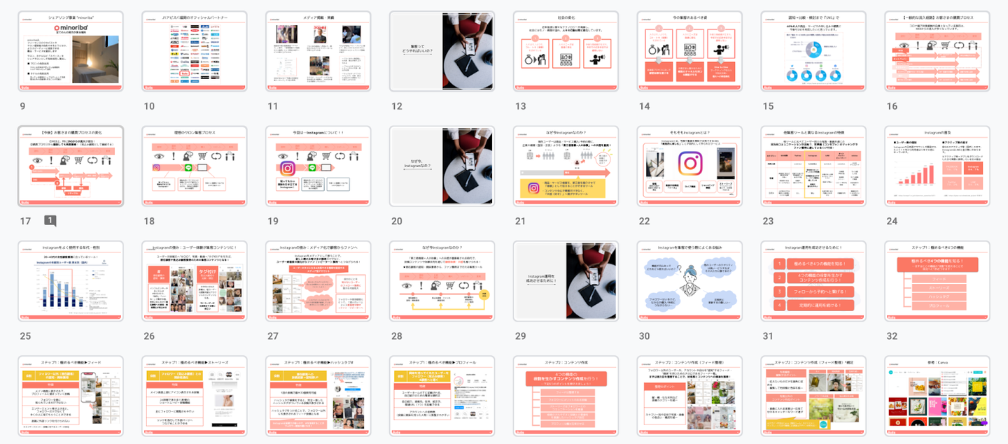 卒業前に挑戦し始めたInstagramセミナーの一部資料