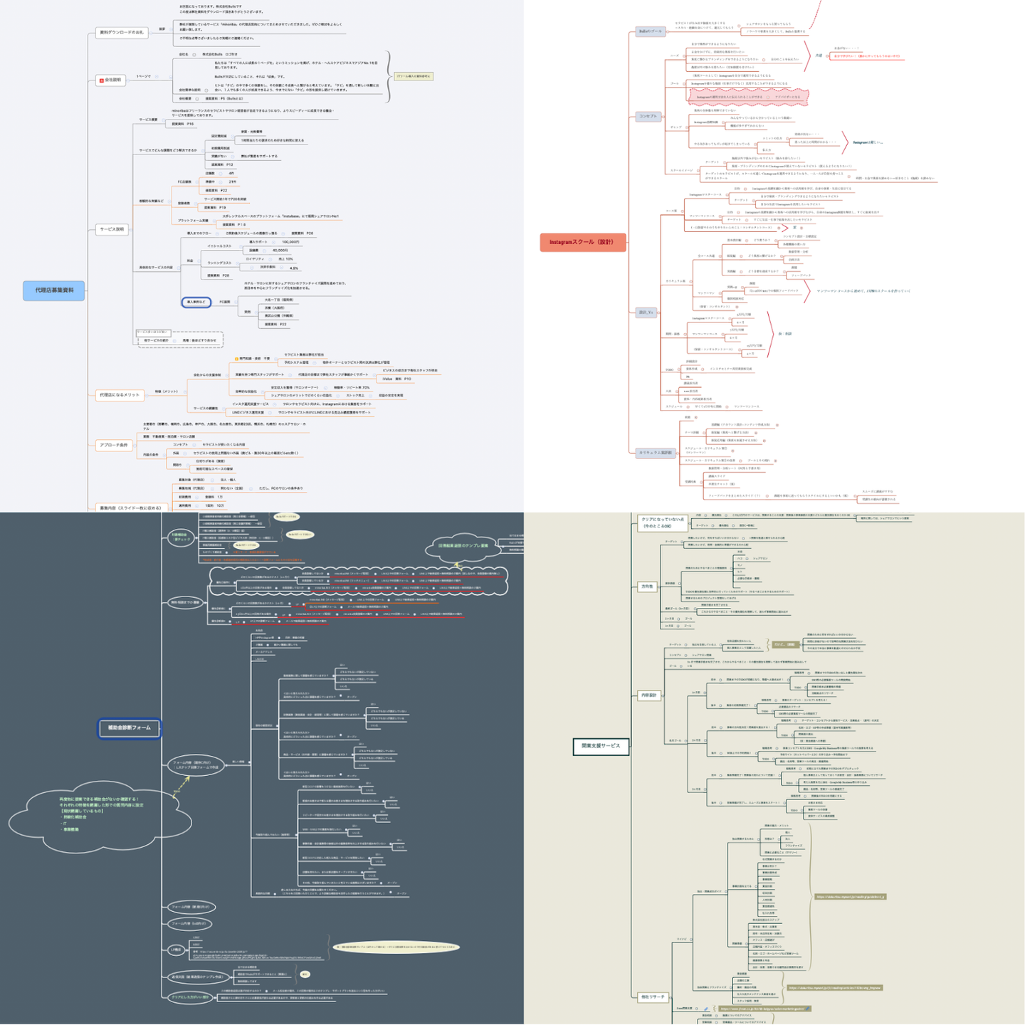 頭の中を整理するため・資料や商品開発内容をすり合わせるために徹底したマインドマップ