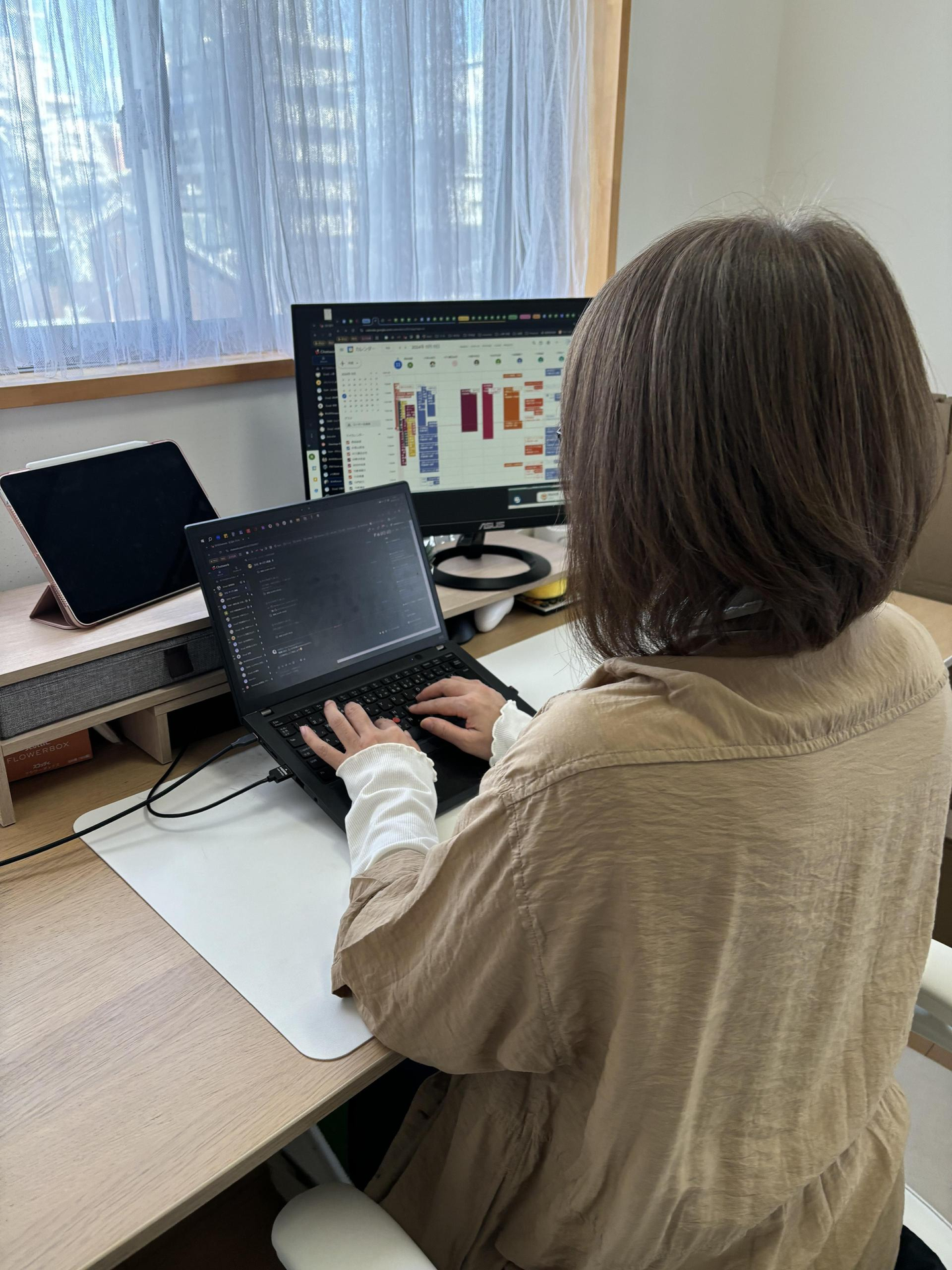 上長の影山さんは、まさに「教えるのが上手」という表現がぴったりで、社員やパートにとって先生のような存在です。フィードバックが的確で、何がわからないのかを丁寧に引き出し、適切なアドバイスをしてくれるため、非常に助かっています。また、影山さんは非常に柔軟な考え方を持っています。固定観念にとらわれず、物事を新しい視点から捉える姿勢がとても印象的です。毎週1回のタスク整理ミーティングや、電話・チャットでの相談を通じて、優先順位を整理しながら業務を進めていけるので、非常に働きやすい環境が整っています。