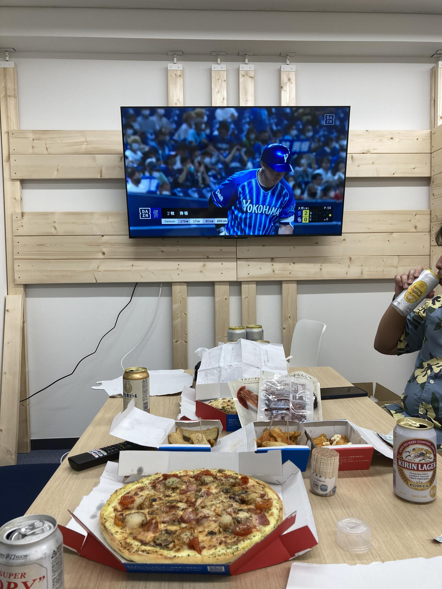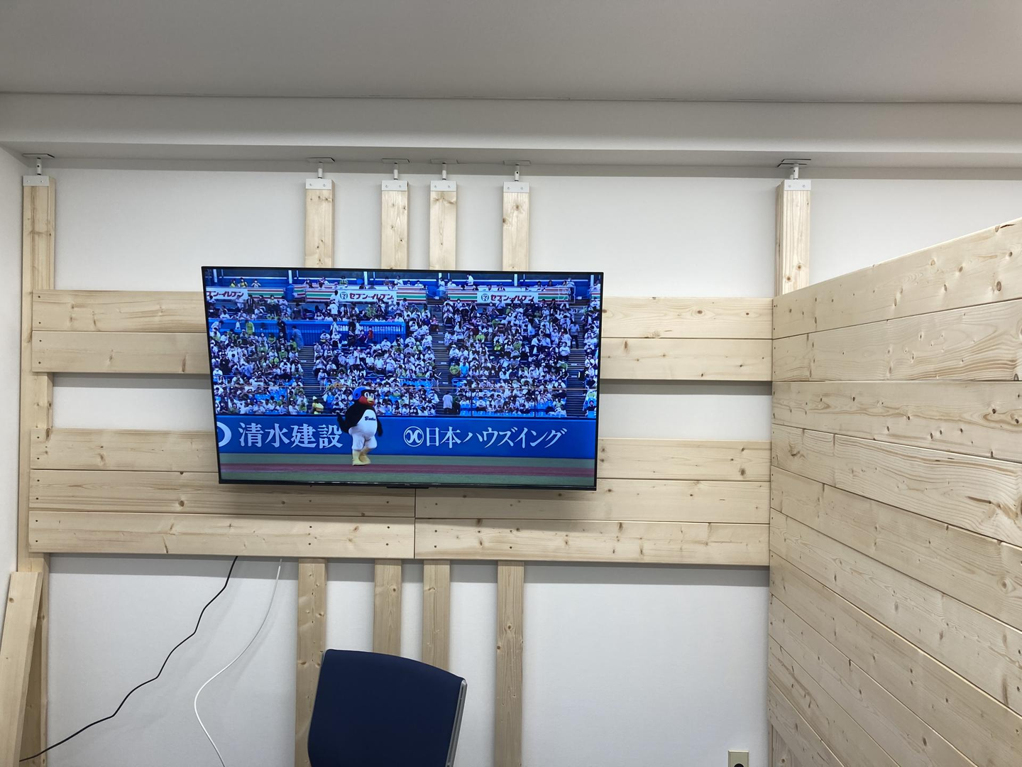 壁掛けテレビも完成!DAZNも契約しているので、オフィスでベイスターズの試合も観られます!
