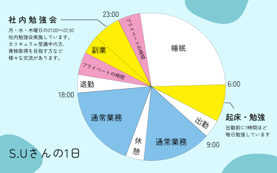 第1弾は、現場でSEとして活躍しながら社内ではテクニカルマネージャーを担うUさんの1日をご紹介します。 私たちがどんなふうに時間を使い、どんな想いで過ごしているかを知ることで「まずは話を聞いてみたい」と感じていただけると嬉しいです。