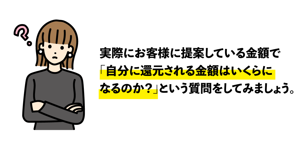上記の質問をすることで、自分の還元金額を見極めてみる、というのはひとつの方法ではないかと思います。