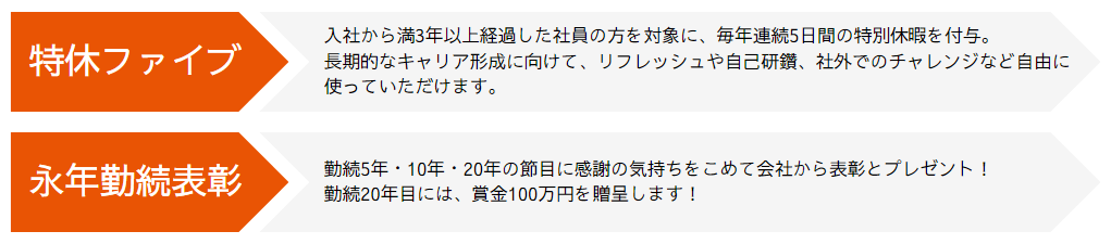 阪本:3年、5年、10年と長期的に活躍してくれる人を増やしたいと思い、「特休ファイブ」と「永年勤続表彰」も新たに導入しました!