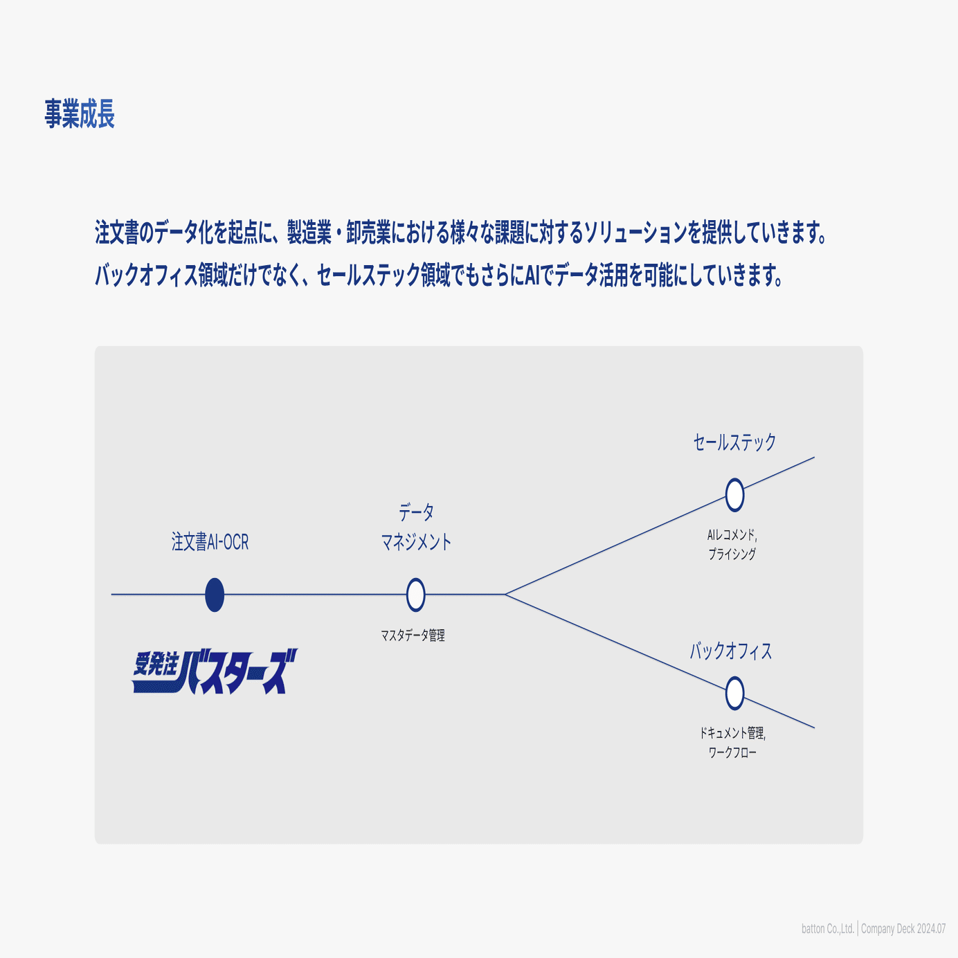 「受発注バスターズ」で培った経験と信頼を基盤に、製造業・卸売業の未来を切り開いていきます。