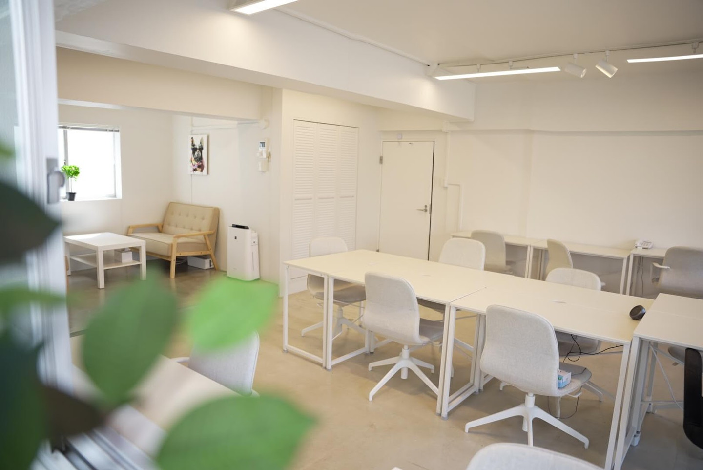 オフィス内も白を基調とした内壁や机を使用し、無駄なものを一切置かず、オフィスの要所要所には癒やしの観葉植物が設置されています。